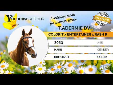 Horse with a lot of overview at the jump and a consistent way of jumping. Shows a good attitude and picks up the work well, despite being only one month under saddle. Shows good technique and scope and jumps consistently. Interesting as a showjumping horse with additional potential towards a hunter career. Sire Colorit – 1.60m level. International showjumper and proven sire with offspring at 1.60m level such as Carlson 86 and Concordia 49. Dam I.Adermie – 1.10m level. Damline Granddam V.Adermie 13 – 1.30m. From this line come: Athena – 1.50m Enjoy – 1.60m Jandino – 1.55m Pumuckl – 1.50m Kensington – 1.50m Additionally multiple horses at 1.45m, 1.40m and 1.35m level. Approved stallion: Arthos R – 1.60m.