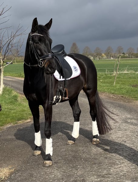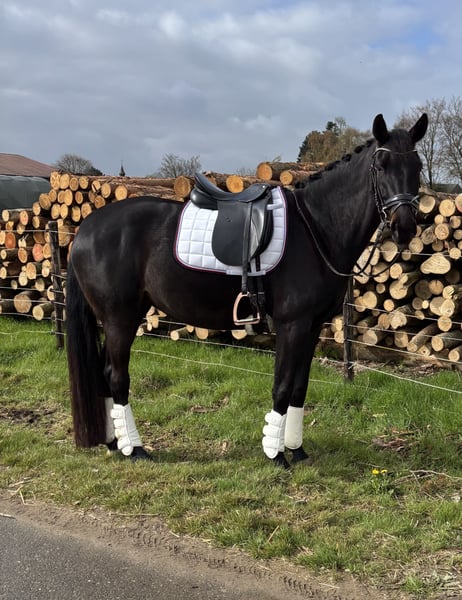 Ich verkaufe meine schwarzbraune Stute. (im Sommer deutlich dunkler) Sie befindet sich auf einem guten Dressurpferde A Niveau und ist bereits als Turnierpferd eingetragen. Es steht dem Turnierstart nichts mehr im Wege. Sie läuft barhuf. Ist komplett geimpft. Sie wurde regelmäßig beim Zahnarzt und Chiropraktiker vorgestellt. Wegen ganz leichtem Ekzem unter dem Wert zu verkaufen. Ich habe es mit einer Decke wunderbar im Griff, trotz Offenstallhaltung. Sie kennt aber auch Boxenhaltung. Ruby ist absolut liebenswert und gut erzogen, auf Grund ihres Alters nicht für Anfänger geeignet, da sie hier und da auch mal Sicherheit benötigt.