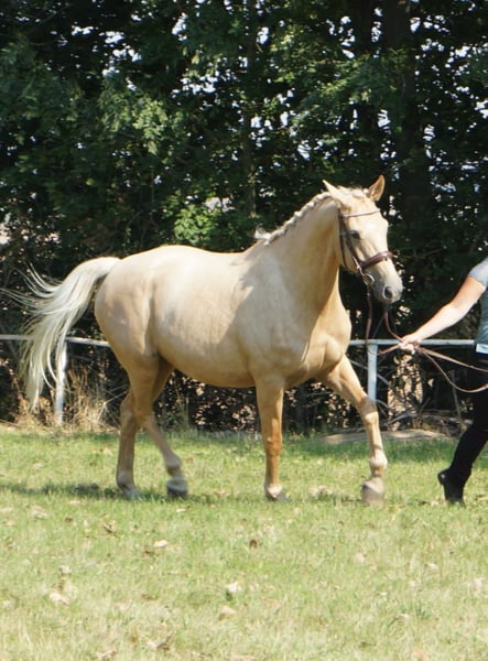 Ich verkaufe hier meine Goldi. Diese war ein A-fertiges Reitpferd und sollte bei mir Zuchtstute sowie Freizeitpferd werden. Für beides ist sie super geeignet da man auch nach Monaten Stehpause den Sattel drauf werfen kann , ohne dass sie heiß wird. Ein ablongieren oder so etwas ist hier nicht nötig da sie eine tolle Arbeitseinstellung hat und gleichzeitig auf den Menschen acht gibt. Dieses Jahr hat sie komplikationslos ihr Fohlen bekommen was direkt mit 8,5 bewertet und entsprechend prämiert wurde. Sie ist wieder von dem Ausnahmehengst Inefavel tragend und das aktuelle Fohlen aus dieser Anpaarung kann hier besichtigt werden. Goldie wurde auch direkt nach der ersten Besamung mit Frischsamen tragend und ist dabei Problemlos wie in allen anderen Dingen. Es gibt nicht eine unangenehme Eigenart die ich hier nennen kann was sie mitbringt. Es spricht nichts dagegen dass sie im Sport eingesetzt wird. Dafür kann gern RöntgenTÜV veranlasst werden wobei die Kosten nicht übernommen werden. AKU kann natürlich auch erfolgen sowie Transport und muss abgesprochen bzw verhandelt werden. Sie ist aktuell nicht trainiert aber wird direkt angeschoben wenn ernsthaftes Interesse an ihr besteht sie als Reitpferd zu haben. Ihr Fohlen ist hier auch inseriert. Ich gebe die Großpferdezucht wegen der Kosten auf. Deutlicher Preisnachlass im Doppelpaket möglich. Platz vor Preis