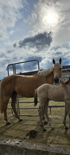 I am offering my Goldi here. She was an A-rated competition horse and was intended to become a breeding mare as well as a leisure horse. She is perfectly suited for both purposes, as she can be ridden again after months of standing without becoming hot or anxious. No lunging or similar work is necessary, thanks to her excellent work attitude and her attentiveness to the rider. This year, she delivered her foal without any complications, which was rated 8.5 and duly premiumed. She is currently in foal again to the exceptional stallion Inefavel, and the current foal from this pairing can be viewed here. Goldi was also successfully bred on her first insemination with fresh semen, and she has proven to be trouble-free in all aspects. There is not a single undesirable trait I can mention. There is no reason why she couldn’t be used in sport; x-ray certification can be arranged, although the costs are not covered. An ultrasound examination and transport can also be organized, but these need to be discussed and negotiated. She is not currently trained for riding but will be started immediately if there is serious interest in having her as a riding horse. Her foal is also listed here. I am giving up my breeding operation due to costs. A significant discount is possible when purchasing both together. Priority over price.