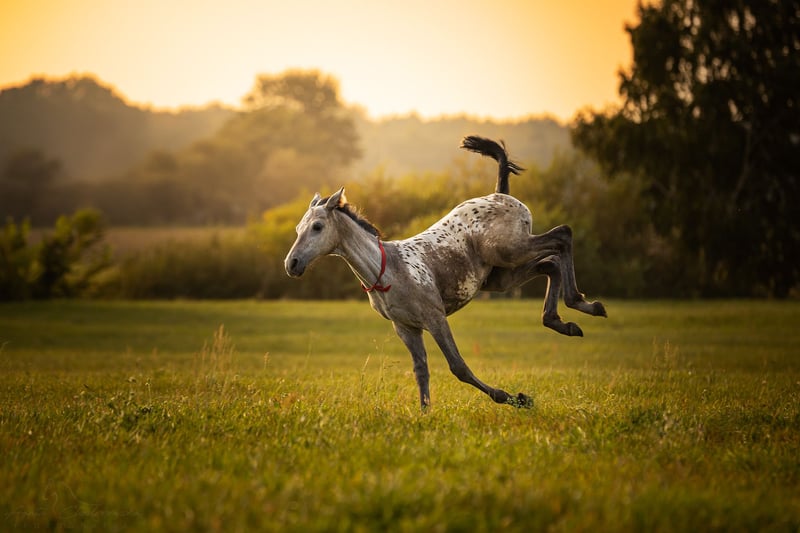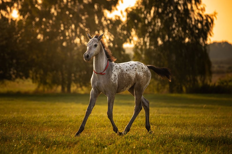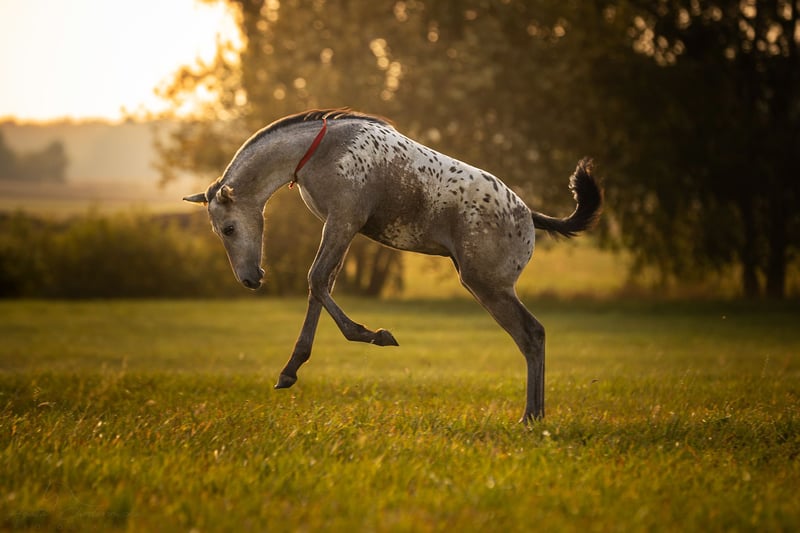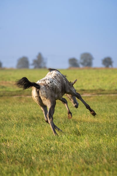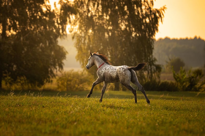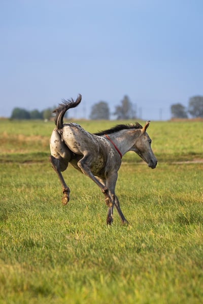Kind of Magic was born bay with an appaloosa blanket, then shed her brown baby coat and decided to produce a wonderful number of spots that keep multiplying across her entire body. A truly unique filly with remarkable coloring.