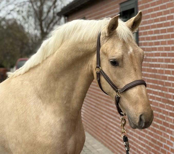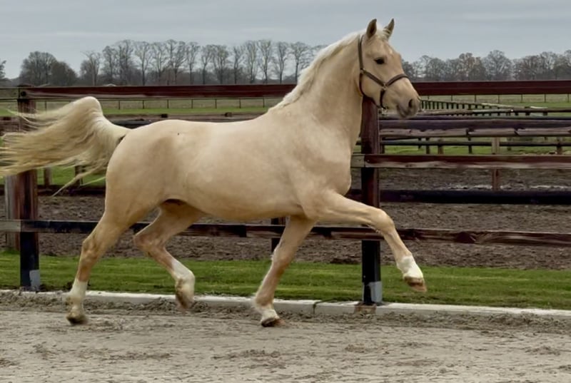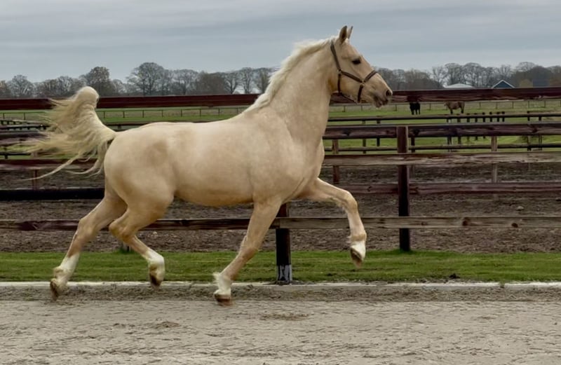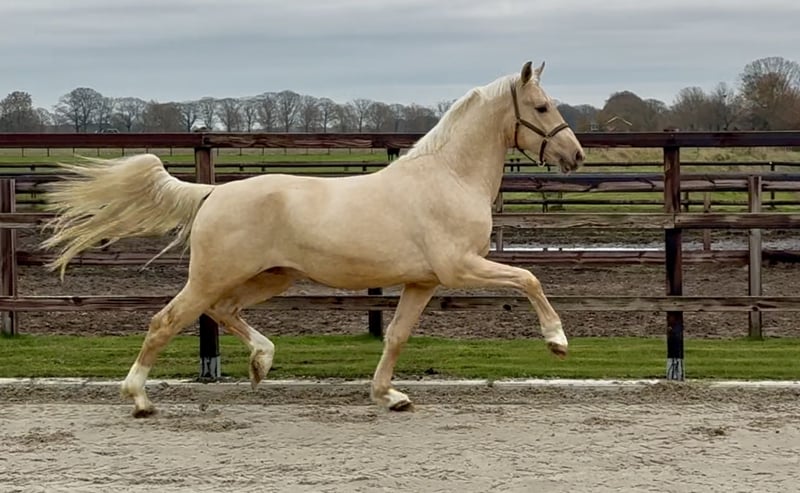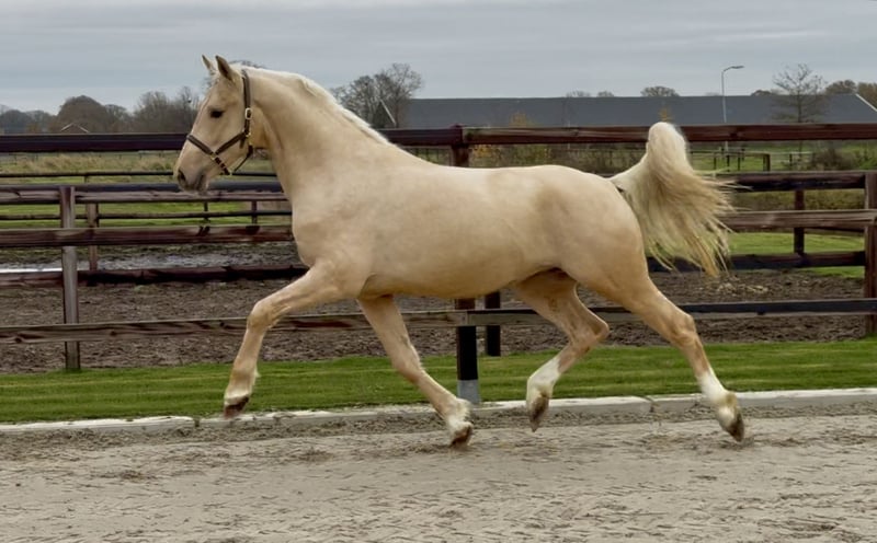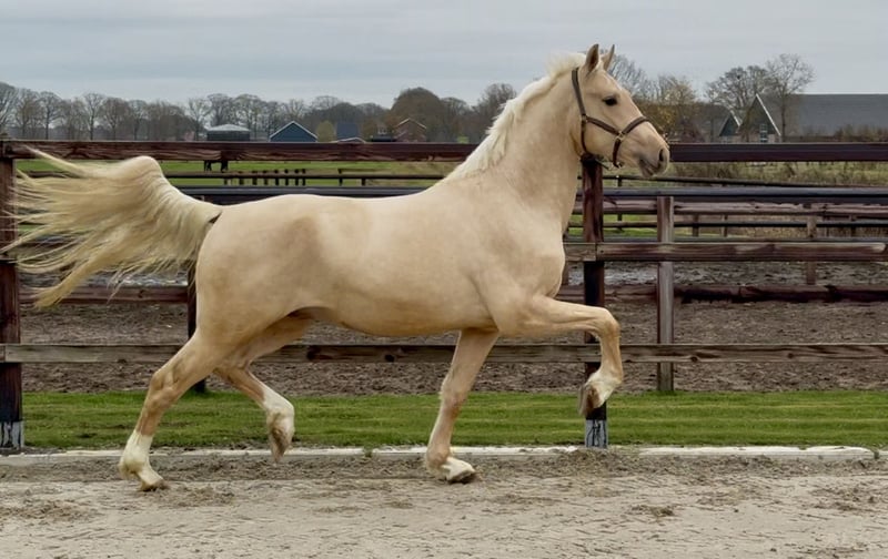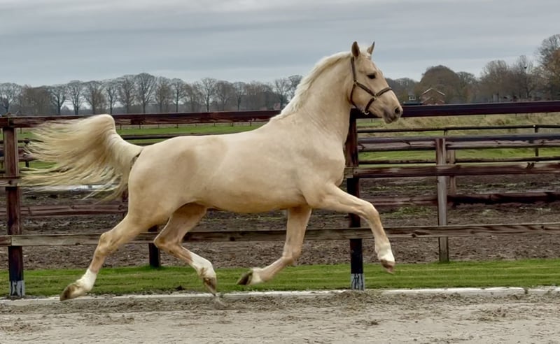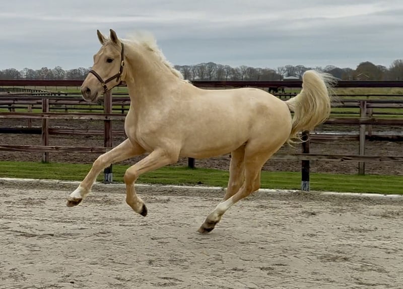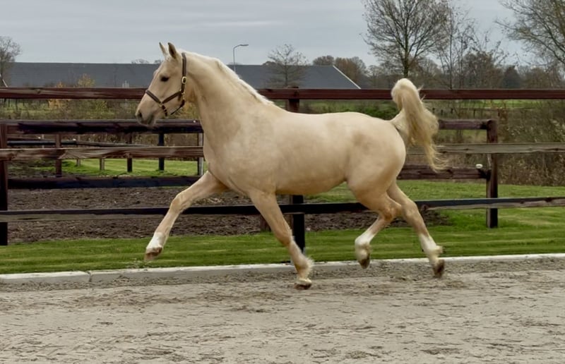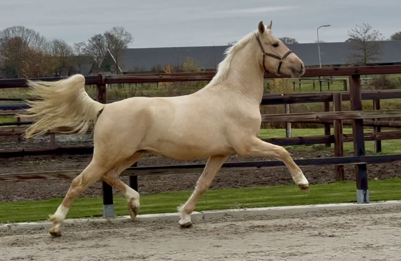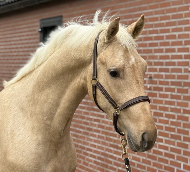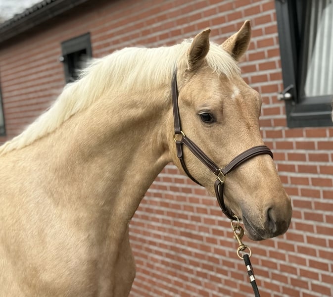 Bijzonder mooie en aansprekende 2,5jr palomino hengst. Deze stoere hengst is al vanaf veulen in ons bezit. En nu heeft u de kans om dit unieke exemplaar te kopen. Bewegen kan deze jonge hengst extra ! Het is een echte showbal ! Hij maakt een mooie houding en gaat zeer krachtig en expressief door de baan. Hij heeft een goede buiging in het achterbeen en heeft tevens een mooi voorbeen gebruik. Tot op heden is hij nog onbeleerd. Wel is hij eerlijk en braaf in omgang. Hij staat correct op zijn benen en hij heeft goede voeten. Bij interesse graag bellen of appen: +31643197337