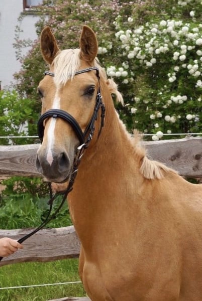 ⚜️Milano Gold – Palominohengst mit besonderer Ausstrahlung⚜️ Mit Milano Gold präsentieren wir einen jungen Hengst, der nicht nur durch seine seltene Sonderfarbe Palomino, sondern auch durch seine Veranlagung und sein Wesen begeistert. Milano Gold ist ein dreijähriger Hengst (geb. 2022), aktuell ca. 1,55 m groß und befindet sich weiterhin sichtbar im Wachstum. Sein kompakter, sportlicher Körperbau und seine harmonischen Proportionen lassen bereits jetzt auf eine vielversprechende Entwicklung schließen. ⚜️Seltene Farbe mit genetischem Potenzial⚜️ Milano Gold trägt das begehrte Cremgen, das für die charakteristische Aufhellung sorgt – und das nicht nur optisch: Er vererbt dieses Gen mit einer Wahrscheinlichkeit von 50 %, was ihn besonders für Züchter interessant macht, die auf Sonderfarben setzen. ⚜️Erfolgreiche Körung – Talent am Sprung⚜️ Im September 2025 absolvierte Milano Gold seine Körung mit einem sehr guten Ergebnis. Besonders im Freispringenkonnte er die Richter mit viel Übersicht, Technik und Vermögen überzeugen. Seine Springanlage zeigt sich kraftvoll, klar strukturiert und mit natürlicher Intelligenz – eine ideale Grundlage für den Sport. ⚜️Top-Abstammung – doppelte Veranlagung⚜️ Milano Gold ist nicht nur optisch ein Highlight – seine Genetik spricht für sich. Er stammt väterlicherseits vom Michelangelo A der wiederum vom bekannten Magic Memphis ab, dem er sowohl die Sonderfarbe als auch Ausdruck und Präsenz verdankt. Über die Mutterseite bringt er erstklassige Springgene von Chaman und Ismo mit. Diese Kombination macht ihn doppelt veranlagt – mit besten Voraussetzungen für Rittigkeit, Springvermögen und sportliche Leistung. ⚜️Charakter zum Verlieben⚜️ Milano Gold überzeugt nicht nur unter dem Sattel oder an der Hand, sondern auch im täglichen Umgang: Ausgeglichen, menschenbezogen und unkompliziert zeigt er sich als absolut umgänglicher Partner – ein Charakter, der sowohl Profis als auch ambitionierte Amateure begeistert. Milano Gold steht ab sofort für alle Stuten (alle Farben) zur Verfügung. Decktaxensplittung: 200€ + 300€ bei Trächtigkeit. Bei Interesse an Deckeinsätzen oder weiteren Informationen freuen wir uns über Ihre Kontaktaufnahme!