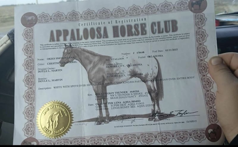 VERFÜGBAR AUF DEM ONLINE-PFERDE-AUKTIONSSERWARTEN UNTER www.MagicHorseAuction.com GEBOTE AB JETZT BIS DIENSTAG, 25. NOVEMBER! – KAUF-OPTION ZUM FESTPREIS! *Der Endpreis wird auf der Auktionsseite festgelegt* VERKÄUFER-KONTAKT: Shauna Cooper, 309-229-4249 STANDORT: Princeville, Illinois *Okies Smokin Lena* aka Rusty ist ein 2015 registrierter Appaloosa-Gelber. Er ist ein gefleckter Sorrell mit einer Größe von 16,1 hh. Rusty ist ein Allrounder. Er wurde in mehreren Disziplinen ausgebildet. Er hat vier Monate Barrel-Racing-Training sowie sechs Monate Dressurtraining absolviert. Zudem wurde er ausgiebig auf Trails geritten. Er ist verkehrssicher und reitet den ganzen Tag für Sie. Auch hat er andere Pferde auf den Trails problemlos begleitet. Er kann sowohl englisch als auch western geritten werden. Er hat Erfahrung im Flaggenreiten. Rusty ist eher ruhig im Temperament, aber eifrig und willig, zu gefallen. Zögern Sie nicht, jederzeit bei Fragen Kontakt aufzunehmen oder einen Termin für eine Besichtigung mit Rusty zu vereinbaren!