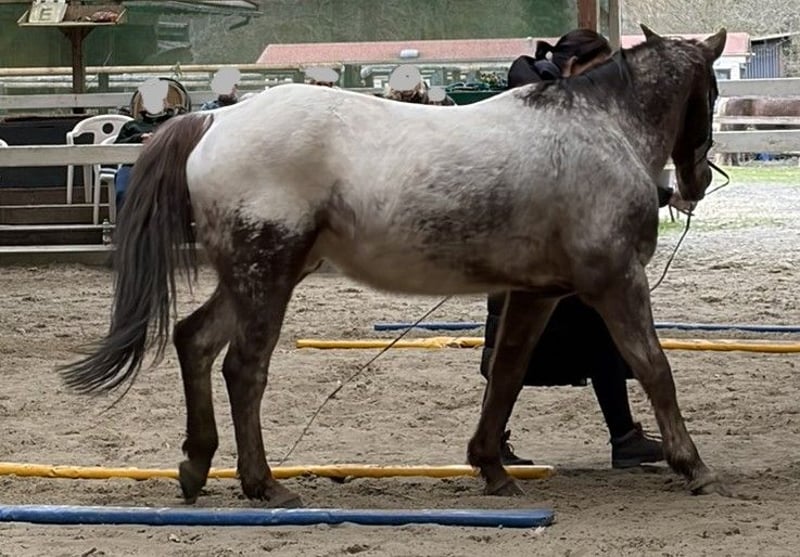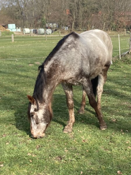 Ich verkaufe White Back Buddy, einen 2012 geborenen Appaloosa Wallach mit Abstammungsnachweis. Mit seiner Musterung und Farbe (Chestnut) ist er ein echter Hingucker. Er ist geimpft, entwurmt, war beim Zahnarzt und natürlich regelmäßig beim Schmied, wo er brav ist. Außerdem ist doppelt negativ auf PSSM getestet worden. Er wurde und wird freizeitmäßig geritten. Gezäumt wird er gebisslos mit einem Glücksrad. Dabei reagiert er sehr fein auf Hilfen. Er läuft barfuß mit Hufschuhen, war die letzten Monate aber vorne beschlagen. Er ist ein guter Kumpel, sehr menschenbezogen und gelehrig. Fühlt sich im Gelände wohl und ist dabei sehr trittsicher und nicht schreckhaft. Beim Klettern kann man ihm gerne die Führung überlassen. Bei der Bodenarbeit ist er aufmerksam. Er kennt Boxenhaltung und Offenstall. Hänger fahren ist kein Problem. Ich selber habe ihn vor etwas über einem Jahr gekauft in dem Wissen, dass er Training und Ausbildung nötig hat. Beim Probereiten hatte er leicht gebuckelt, was aber leicht zu sitzen war. Die Aufgabe schien machbar. Ich habe Muskelaufbau betrieben und zusammen mit einer Trainerin versucht ihm Freude an der Bewegung zu vermitteln. Im Herbst ist der Rücken geröntgt worden. Es wurde ein Wirbelengstand diagnostiziert, der aber bei ausreichender Bemuskelung unkritisch ist. Über den Winter ist er nicht geritten, sondern vom Boden gearbeitet worden, mit gutem Erfolg für den Muskelaufbau. Im Schritt haben ich mit Buddy gute Erfolge erzielt, fleißige Schrittrunden waren möglich, aber im Trab zeigte er wieder einen deutlichen Unwillen durch buckeln. Die Aufgabe Buddy zu einem für mich gut zu reitenden Kumpel zu machen ist für mich zu groß. Ich bin Späteinsteiger und leider nicht mehr 20. Mir fehlt die nötige Erfahrung und Sicherheit für diese Aufgabe. Das musste ich leider erkennen. Buddy braucht einen erfahrenen Reiter der sensibel mit ihm arbeitet, ihn fordert und fördert. Er ist kein Anfängerpferd und wird nur in kompetente Hände abgegeben. Telefonisch gerne mehr.