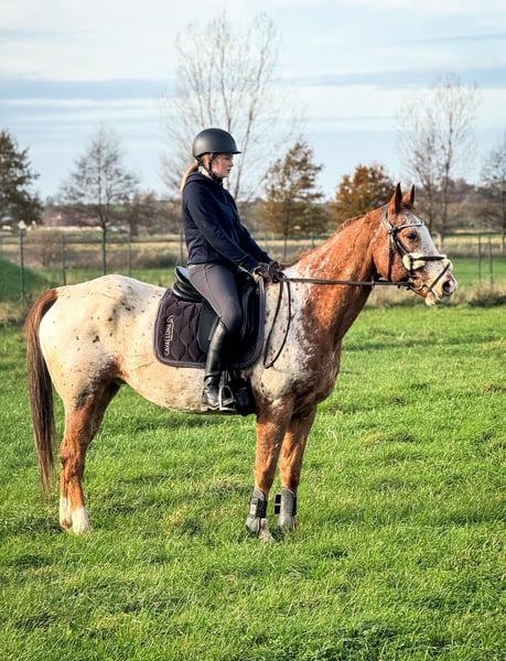 Crumble ist ein top ausgebildeter und sehr angenehmer Wallach, der sowohl auf dem Platz als auch im Gelände viel Freude macht. Er ist fein an den Hilfen, zuverlässig und motiviert. Durch eine Pause bedingt (gesundheitliche Gründe der Besitzerin) braucht er aktuell wieder etwas Muskelaufbau. Wir verkaufen Crumble im Auftrag einer Freundin und arbeiten ihn derzeit selbst. Er zeigt sich im täglichen Umgang brav, unkompliziert und verlässlich. Auch weniger routinierte Reiter kommen gut mit ihm zurecht – wir halten ihn sogar für Anfänger geeignet.