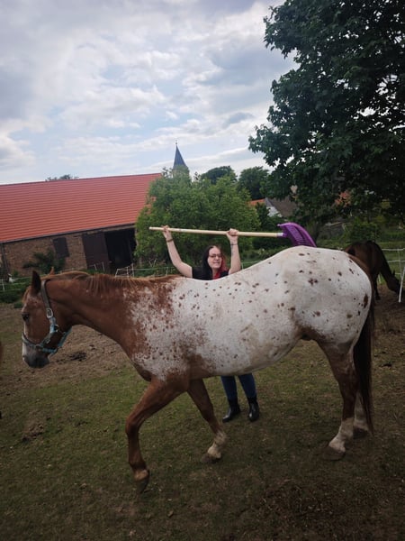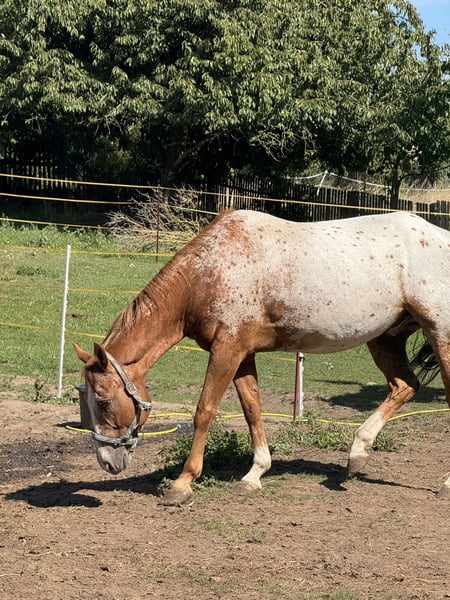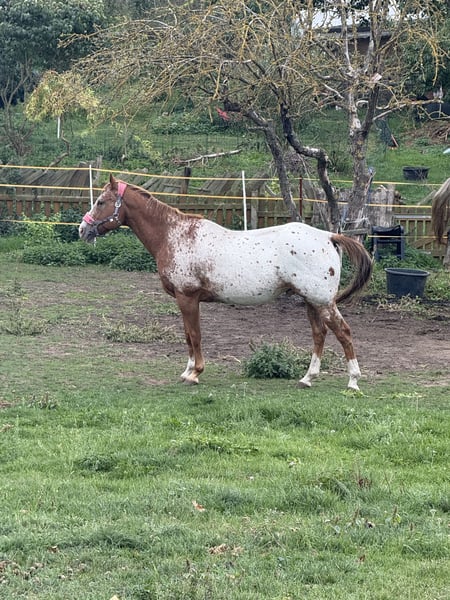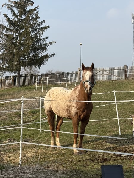 Chamàn is a 14-year-old Appaloosa gelding with a height of approximately 1.64 m. We bought him from Spain, where he was kept with the gray mare that is with us. He is currently being ridden as a leisure horse and is particularly suitable for riders looking for a calm and fearless partner. ✨ Character: Chamàn is an absolute XXL teddy bear who quickly wins hearts with his calm and relaxed nature. He is good-natured, fearless, and also suitable for children. At the same time, he sometimes has his "own mind" and can be a bit stubborn – he needs a rider who can set clear, loving boundaries. Training & Use: • Basic training at an elite school in France • Leisure horse with a love for jumping • Well-behaved in the field, both alone and in a group • Proven in open stabling and suitable for herd life (currently in a small herd) Health & Care: • Regularly vaccinated, dewormed, and cared for by a veterinarian • Barefoot, according to the previous owner, may need hoof boots in front after trimming, but so far no problems with us • Shoeing and loading friendly Miscellaneous: Chamàn is a reliable, fearless companion who is not easily disturbed. Due to increasing difficulties with the mares in our herd, we are now looking for a new home for him where he can continue to be developed and live out his loving XXL teddy bear nature. For a trial ride, we charge a protection fee of €30, which must be paid in cash in advance. Of course, this amount will be fully credited towards the purchase. If you are interested or have any questions, I am happy to assist. *It does not benefit any of us if the horse just ends up on your watchlist; everything is negotiable, and we don't bite.