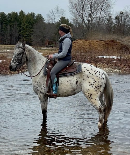 Bullet Coming 4 yr old 14.2-15hh Flashy Registered Appaloosa Gelding Extensive ground & western trained. Can be ridden English too. Completely vetted with coggins, teeth floated, and all records available. He’ll stand quietly to be mounted, ties, tacks, grooms, bathes, loads, lunges, & caught with ease! He’s not spooky and will go anywhere you point him, through water, over obstacles, rides out alone or with a group. He’s great with the farrier. He is used to light traffic, other horses, and dogs. He is used to all types of electric fencing. He western reins, neck reins, backs up and side passes. He has a smooth trot and lope that you can sit all day long! He is a sweetheart who loves attention and is so willing to learn and please! He is young and ready for his next level to be polished into what you want! Level is confident advanced beginner to intermediate rider on up. He's ready to be shown now! Extensive trained Located in Simsbury, CT