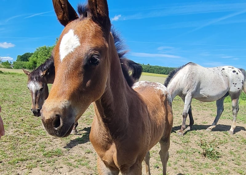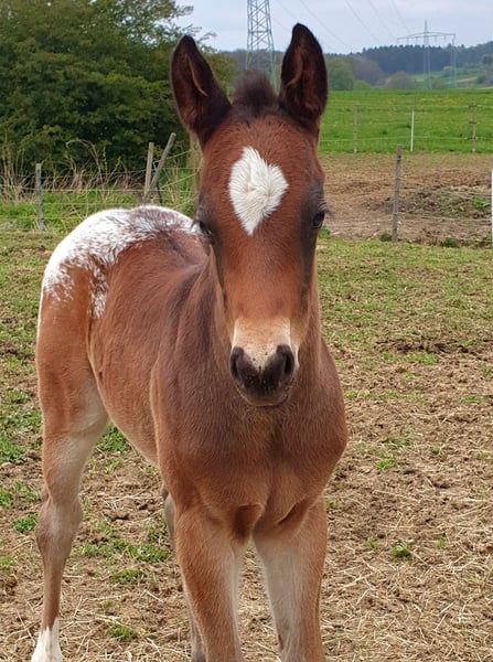 Dee Jay is een grote, sterke Appaloosa ruin, 157/158 cm hoog. Hij heeft stevige botten en harde hoeven. Hij is nu klaar om onder het zadel te worden gebracht; wij zijn voorstander van rijden met 4- of 5-jarige paarden. Dee Jay is een echte knuffelbeer, geen hectische pony, maar een die eerst nadenkt voordat hij handelt. Heel lief en mensgericht, met veel verstand. Hij komt uit beproefde ranchhorse-lijnen, maar we kunnen ons hem ook goed voorstellen in reining, omdat hij ondanks zijn grootte zeer snel en wendbaar is. Voor de ranchhorse-klassen, waarin hij ook mentaal moet werken, is hij perfect geschikt. Video's kunnen via WhatsApp worden gestuurd.