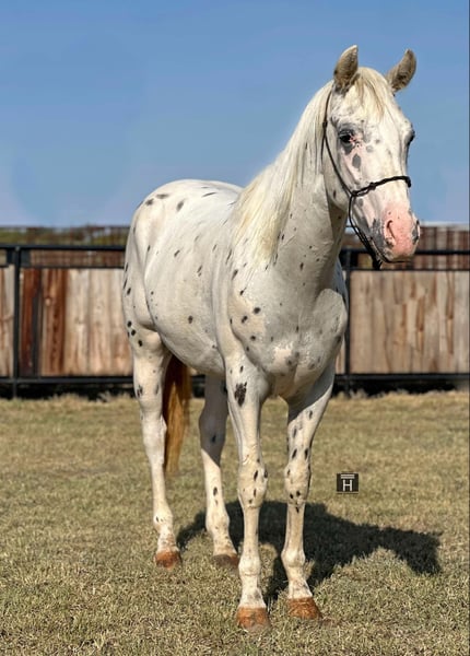 ONLINE AUCTION Place your bids at www.PlatinumEquineAuction.com Starting Bid $3500 Auction ends November 10th, 2024 Need a new saddle? Check out White Rock Saddles on our website or Facebook! Flashy meets Personality. Meet Cowtown – a 2021 Appaloosa gelding standing 15 hands tall. Cowtown is the sweetest horse you will ever meet with tons of personality and the gentlest demeanor you could ask for. He is one of the most willing and good natured young horses we have ever had the pleasure of owning. Cowtown is started right and going well. He rides outside, over the obstacles, down the trails, out on the ranch and gathers the cows like a champ. He is independent and confident and will have fun doing any task you ask him to do. He is smooth and easy to ride. He saddles up like a gentleman every ride and is the first to meet you at the gate ready to get any type of attention he can get. Cowtown is playful and loves the balls, tarps, bags, blankets, you name it he will play with it. He is well mannered, hauls, stalls, pastures, bathes, etc. He learns quickly and remembers what you teach him. Cowtown has one of the best minds and could go any direction! He is sound and straight/clean legged. FMI call/text Holland Horse Co. Chanel 559-978-6320 for more information. Located in Jacksboro, TX. We are happy to answer questions and help arrange shipping nationwide. ONLINE AUCTION Place your bids at www.PlatinumEquineAuction.com Starting Bid $3500 Auction ends November 10th, 2024 Need a new saddle? Check out White Rock Saddles on our website or Facebook!