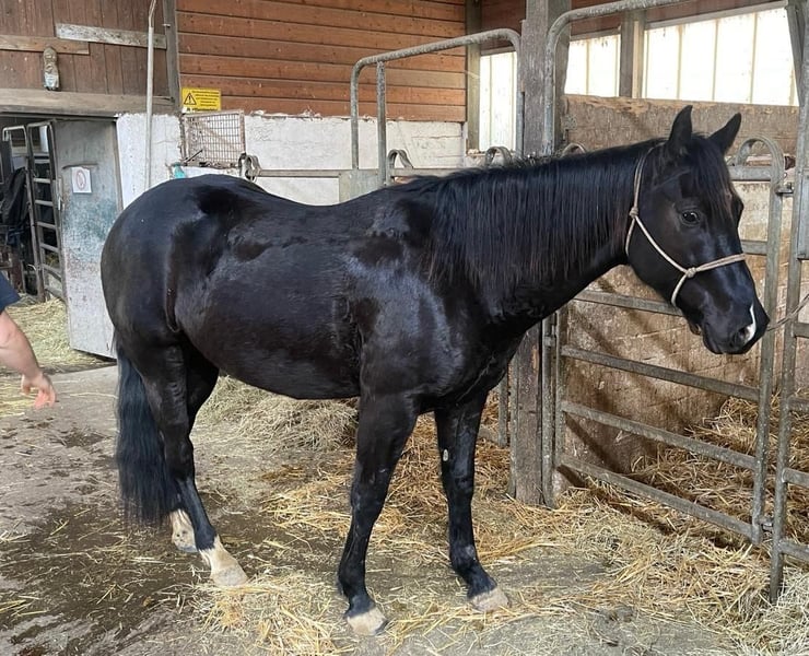 Dark Kiss *Smokey* Born in April 2021, this solid black Appaloosa gelding shows no specific markings. He has been in professional training and riding since May of this year. He is well-schooled under saddle, easy to handle, enjoys hacking out, and even swimming. Registered with EWU as a young horse Performance Permit His siblings are successful in all-around and pleasure disciplines. Viewing and test riding available by appointment. Location: 57647 Enspel / Westerwald Price upon request