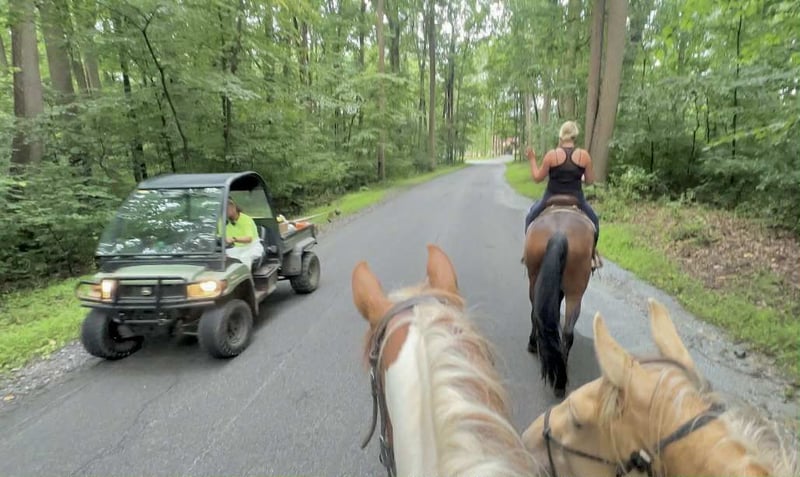 ⭐️ 𝐀𝐔𝐆𝐔𝐒𝐓 𝓐𝓵𝓵 𝓢𝓽𝓪𝓻 𝓛𝓲𝓷𝓮𝓾𝓹 ⭐️ Happening now thru MONDAY | AUGUST 25th - Available EXCLUSIVELY on HorseBid's website! For more details and to register visit: www.Horsebid.com CONSIGNOR CONTACT: Triple R Horses 610-806-2613 LOCATION: New Holland PA BREED: Appaloosa REGISTERED: Yes REGISTERED NAME: Cowboys N Bullets COLOR: Bay HEIGHT: 16.1 AGE: 5 GENDER: Gelding “Cowboys N Bullets” aka “Harlan” is a 5yr old, 16.1hh, registered Appaloosa gelding. Harlan is a super sweet, docile, laid back gelding, who absolutely loves trail riding and would make a great husband horse! Harlan has a very kind heart, and loves a relaxing adventure out on the trails! He will also dabble in ring work as well, he is safe, and has an old soul. On the trails, Harlan will lead, follow, go out alone and in groups. He is safe for anyone to go hit the trails with and he takes care of his rider. Harlan crosses logs, rocks, water, he is traffic safe, doesn’t care about bikes, wildlife, dogs, etc. He can take a joke and makes for a relaxing ride. Drop the reins and let Harlan follow the group, he will take care of you. Harlan will jog and lope out on the trails and drop back down to a relaxing walk right after. He is brave and willing, he will take the lead and show the way for the group. Harlan would make a great camping partner as well, he stands tied quietly and loves to explore! Whether you, your husband, your kid, or your grandma want to go out and have fun the trails, Harlan will take great care of you! Harlan has smooth, rhythmic, gaits. His lope is very lofty; and very comfortable. I would consider Harlan more of a push ride, yet he will move out when asked without a crop or spurs. He moves off of leg nicely, on the trails and in the ring. He is also doing well with neck reining. Harlan backs up very easily, and will pivot both ways. But even though he has “buttons”, his aids are still beginner and user friendly, making him safe enough for a kid, a husband, etc. In the ring, Harlan will walk, jog, trot, lope, canter, knows his leads, and is a very simple guy to ride. He will ride on the buckle, or collected. He listens well to voice commands, and will ride off of your seat. He rides in a simple snaffle, you could ride him in a halter and lead rope, I even rode him with out a bridle. He is gentle all around. I have lightly introduced Harlan to fences and he took right to it. He is still green and learning over fences but he has been very honest and does a good job. Harlan really likes to please his rider and he is very intelligent. In the barn, Harlan is very easy to work around. He is safe for kids and beginners to work with. He has very good ground manners. The best word to describe this boy is “docile”. He doesn’t mind dogs running all over the place. Harlan stands well on the cross ties to be groomed, bathed, tacked, etc. He is good for the vet and farrier. Harlan is an easy keeper with no maintenance or supplements. When left in his stall for long periods of time, he will mildly crib. It’s usually when he runs out of hay, or it’s been a long day. I have not witnessed Harlan cribbing at all while turned out. Other than that, he has no other bad habits. Harlan is a babysitter in the pasture, he is super drama free and loves all horses. He currently lives with mares and geldings and stays out of the way. I wouldn’t call him a low man, just doesn’t like any trouble. He is easy to catch and will greet you at the gate. Harlan truly has an old soul, he is very adored here as he is safe for anyone to play with. He is so easy to have around and has been such a joy to work with. He is always game for whatever I put him to that day. He does not have to be in a routine, and he has been a tack up and go type of guy. Harlan will self load into the trailer, trailers great, and ties to the trailer to get ready. This guy would make the perfect family horse, or all around partner! For more information on Harlan, please don’t hesitate to reach out! Shipping can be arranged anywhere!