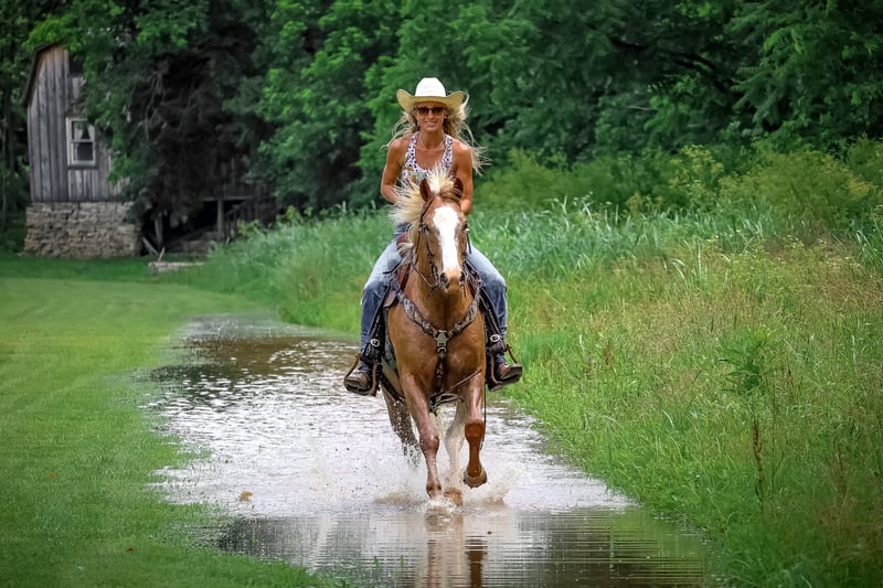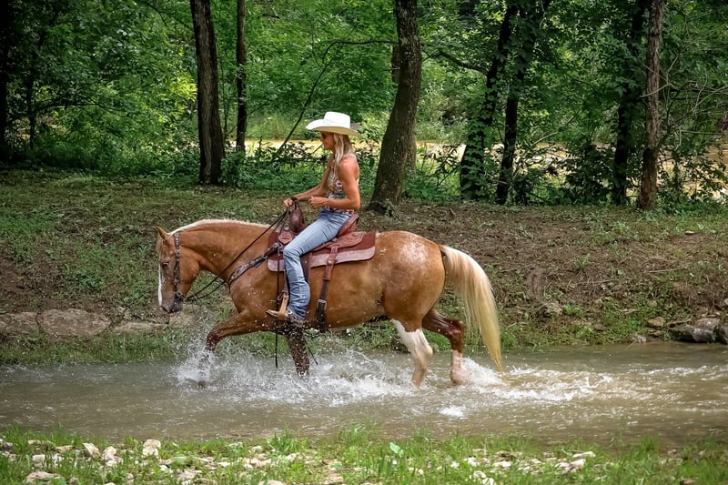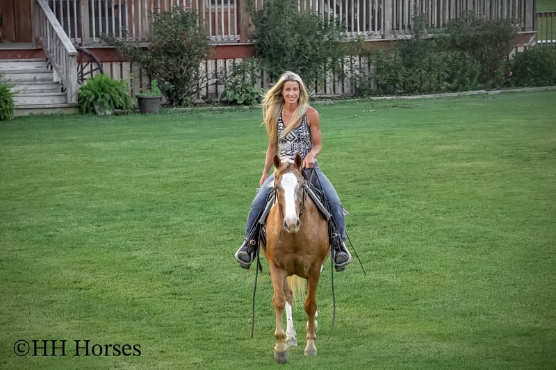 ONLINE AUCTION Place your bids at www.PlatinumEquineAuction.com Starting Bid $3500 Auction ends July 6 2025 Need a new saddle? Check out White Rock Saddles on our website or Facebook! This is “DAILY DOUBLE”, a really unique, cute, well broke, and well trained PALOMINO APPALOOSA PAINT gelding. He is uniquely marked with a sprinkling of white over his rump and a high white stocking leg that makes him really stand out. This gelding has been hauled to many different states and trail ridden through lots of varied terrain. He will cross water, go up and down the steep embankments, and he is sure footed on the rocks. He is comfortable to ride with an easy to sit jog and a collected canter. He is also trained to lay down to mount and dismount. You can ask him to lay down while on his back or the ground. He has been in the arena and ridden English and Western. He will lope a nice circle without the confines of a pen and he catches his leads. He stops easily and has a nice one hand neck rein. He stands 14.1 hands tall and is 5 years old. This nice gelding is flashy, fun, and really stands out with his color and cool abilities. He walks out nicely on a loose rein and will not go any faster than what is asked of him. He is an easy keeper, he gets along well with other horses and has excellent ground manners. HH Horses Erin 304-238-4155 Located in Flemingsburg, KY. ONLINE AUCTION Place your bids at www.PlatinumEquineAuction.com Starting Bid $3500 Auction ends July 6 2025 Need a new saddle? Check out White Rock Saddles on our website or Facebook!