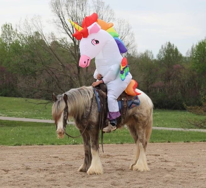 Wysłany do Cowgirl Cadillacs w Sheridan, WY. Sprzedaż 14-15 czerwca. Można licytować online, telefonicznie lub osobiście! Czy czekałeś na rycerza w lśniącej zbroi, który Cię porwie? DANTE STEEL KNIGHT jest tym, na co czekałeś! Z wyjątkowym umaszczeniem roan/appaloosa, puszystymi, pierzastymi nogami, puszystą grzywą i ogonem, kochającą osobowością i złotym sercem, nawet średniowiecze nie miało takiego rycerza!!! Przez ostatni rok Dante skradł serca naszych małych dziewczynek! Jest Panem Osobowością i Panem Cierpliwym! Uwielbia uwagę i pielęgnację oraz wszystko, co wiąże się z interakcją z ludźmi! Dante to dobrze zbudowany, 5-letni wałach o umaszczeniu Appaloosa, zarejestrowany jako Gypsy Vanner! Ma płynny jogging, bardzo ładny lope, kręci się w kółko w obie strony, przechodzi na boki i cofa się z łatwością! Dante zna jedną lub dwie sztuczki, gdy kładzie się do wsiadania i zsiadania. Nic dziwnego, że ludzie kochają cygany; ich popularność wynika z ich wszechstronności i spokojnej natury! Dante jest prawdziwym ambasadorem rasy. Dante może wyjść i z łatwością pokonywać szlaki. Przejdzie przez głęboką wodę, nierówne skaliste tereny, pokona strome zbocza i wybierze drogę przez martwe zbocza, a wszystko to przy zachowaniu bezpieczeństwa jeźdźca! Był używany na ranczu do sprawdzania bydła, sortowania par, a także do powożenia cieląt. Jeździliśmy z nim po autostradach, przez miasto i jest bezpieczny w każdym ruchu ulicznym. Widział jasne światła i słyszał głośne głośniki, ponieważ mieliśmy Dantego w przedstawieniu bożonarodzeniowym zatytułowanym "Podróż przez Betlejem", w którym brało udział około 250 aktorów. Dante był dosiadany jak koń rzymskiego żołnierza, przez kilka godzin, gdy szedł w górę / w dół rzędów samochodów pełnych ludzi. Oczywiście ludzie robili zdjęcia i wyciągali ręce przez okna, aby go pogłaskać. W ciągu 2 nocy przez "żywą szopkę" przejechało około 8000 samochodów. Przetestowaliśmy Dantego w każdy znany nam sposób, a on zdał każdy pojedynczy test z wynikiem doskonałym! Pokazał nam, że każdy wiek i każdy poziom umiejętności może się nim cieszyć. Jeśli czekałeś na przybycie swojego rycerza w lśniącej zbroi... ON JUŻ JEST!!! Zadzwoń pod numer 606-308-2461, aby uzyskać więcej informacji.