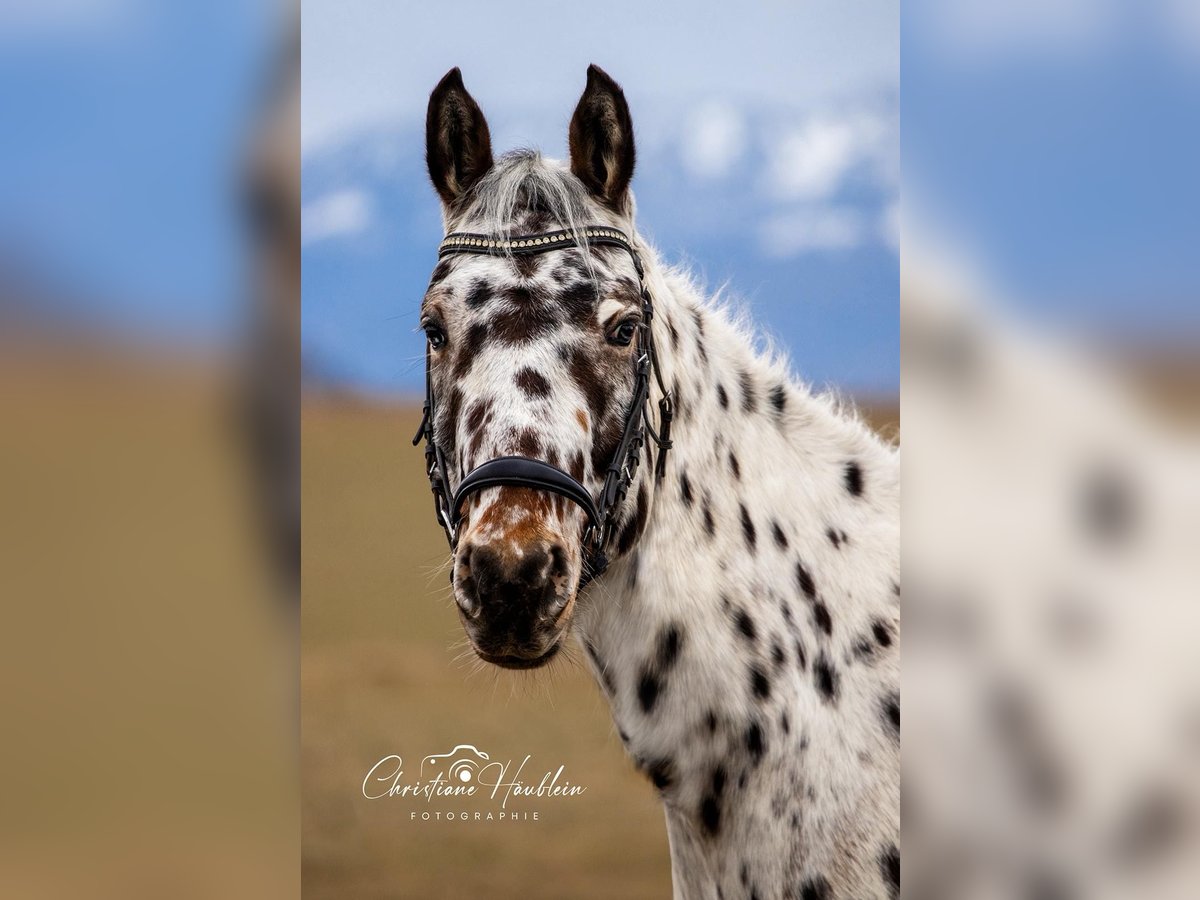 Im Auftrag zu verkaufen – vielseitiger Appaloosa-Wallach mit Sportpotenzial und tollem Charakter Aufgrund einer Bestandsverkleinerung biete ich im Auftrag einen selbstgezogenen Punkte-Wallach, geb. 19.06.2019, zum Verkauf an. Aktuelles Stockmaß ca. 150 cm, Standort Chieming. Vater: reiner Appaloosa Mutter: Polo-Pferd Er wurde bewusst spät und schonend angeritten und stets altersgerecht aufgebaut. Dadurch präsentiert er sich als unverbrauchtes, gesundes Nachwuchspferd mit viel Entwicklungspotenzial und Freude an der Arbeit. Charakterlich überzeugt er besonders durch seine Klarheit im Kopf, hohe Lernbereitschaft und starke Menschenbezogenheit. Er ist sehr intelligent, aufmerksam und möchte seinem Reiter gefallen. Dabei braucht er eine feste Bezugsperson mit ruhiger, konsequenter Führung. Ausbildung & Veranlagung: • Dressurarbeit begonnen, rittig und motiviert • Springen mit viel Vermögen und Übersicht (aktuell bis 1,10 m) • erste Erfahrungen im Polo • vielseitig einsetzbar (Dressur, Springen, Vielseitigkeit, Distanz oder ambitionierter Freizeitpartner) Im täglichen Umgang zeigt er sich absolut brav und unkompliziert: • kein Buckeln oder Steigen • schmiede- und putzplatzbrav • kennt Bodenarbeit und arbeitet motiviert mit • Hunde, Traktoren und Alltagsbetrieb beeindrucken ihn nicht • barhuf Er ist sehr sozial und vorbildlich in der Herde, aktuell im Offenstall in einer Wallachgruppe. Boxenhaltung über Nacht kennt er ebenfalls problemlos. Da er seit dem Fohlenalter im gleichen Stall steht, wurde das Verladen bisher nicht benötigt – aufgrund seines ausgeglichenen Wesens sehen wir hier jedoch reine Trainingssache. Gesucht wird ein 5-Sterne-Zuhause, in dem er weiter gefördert wird und eine feste Bezugsperson findet. Er ist ein vielseitiger, talentierter Partner mit tollem Charakter, besonderer Optik und viel Herz – ein Pferd mit Perspektive. Bei ernsthaftem Interesse freuen wir uns über eine persönliche Kontaktaufnahme. Probereiten 30€