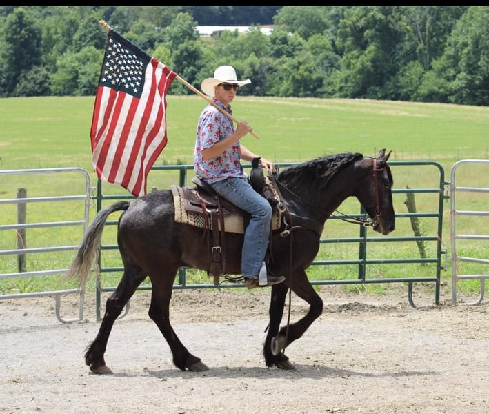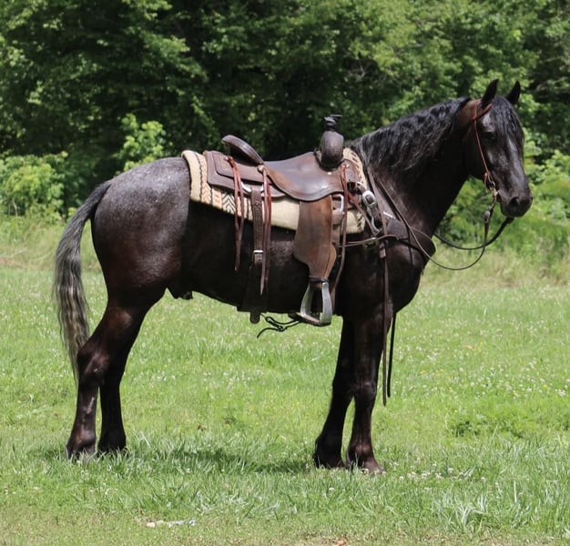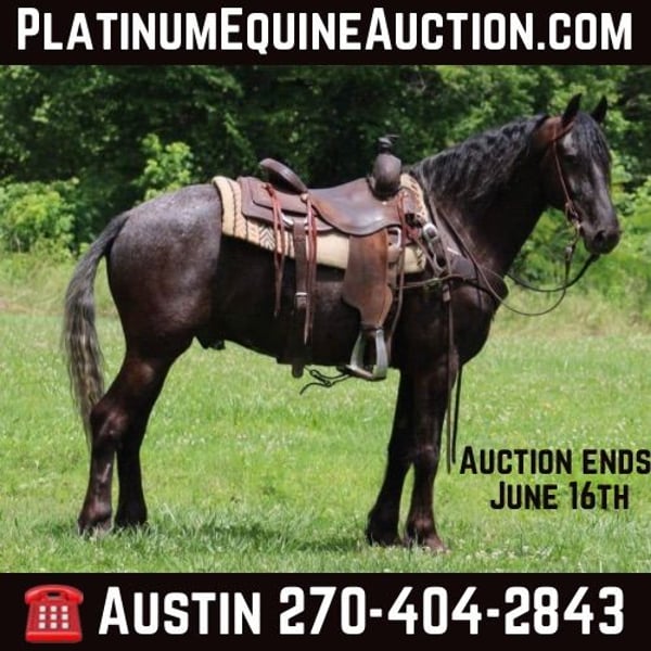 ONLINE AUCTION Place your bids at www.PlatinumEquineAuction.com Starting Bid $3500 Auction ends June 16th, 2024 Need a new saddle? Check out White Rock Saddles on our website or Facebook! Roscoe is a 5 year old Friesian app x gelding that stands 14.3hh Roscoe has been exposed to all aspects of livestock he’s been through all the obstacles and down the trail Roscoe spent a year in the equestrian program at the university of Findlay he lopes on both leads and is soft in the mouth Roscoe WTC beautifully and he picks all of his hooves up with ease Roscoe not only rides like a dream he drives as well Roscoe has had the tarps and flags tossed around him and he doesn’t mind! We have even shot guns off him! Don’t miss this excellent gelding with his whole life ahead of him he’s FANCY! Located in Tompkinsville, KY. Call AK Livestock Austin 270-404-2843 with any questions. ONLINE AUCTION Place your bids at www.PlatinumEquineAuction.com Starting Bid $3500 Auction ends June 16th, 2024 Need a new saddle? Check out White Rock Saddles on our website or Facebook!