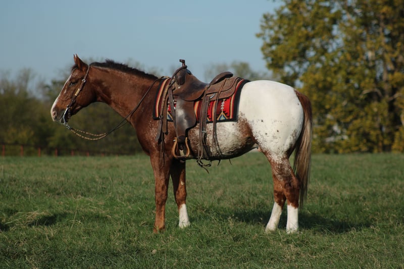 Gus 8 Yr old 15.2hh Chestnut Blanket ApHC Gelding