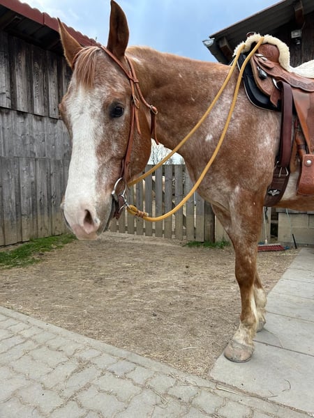 Verkaufe gut ausgebildeten Appaloosa-Wallach, geb. 2017, mit einem Stockmaß von 158 cm. Dieser charmante und vielseitige Wallach überzeugt durch sein freundliches Wesen und seine zuverlässige Natur. Er ist vom Boden gearbeitet und auf einem Parelli Level 2 Niveau. Er wurde bereits Trail und Pleasure Turniere gestartet und zeigt sich im Gelände stets ruhig und gelassen. Dank seiner ruhigen und gelassenen Art ist er sowohl für Reiter mit weniger Erfahrung geeignet, er hat aber auch genug Energie für fortgeschrittene Reiter. Das charakteristische Appaloosa-Fellmuster verleiht ihm einen besonderen Ausdruck und macht ihn zu einem echten Blickfang. Ein zuverlässiger Partner für Freizeit und Trail – bereit für neue Abenteuer! Lewis wird mit Sattel und allem Zubehör verkauft, da seine Eigentümerin gänzlich mit dem Reiten aufhört.