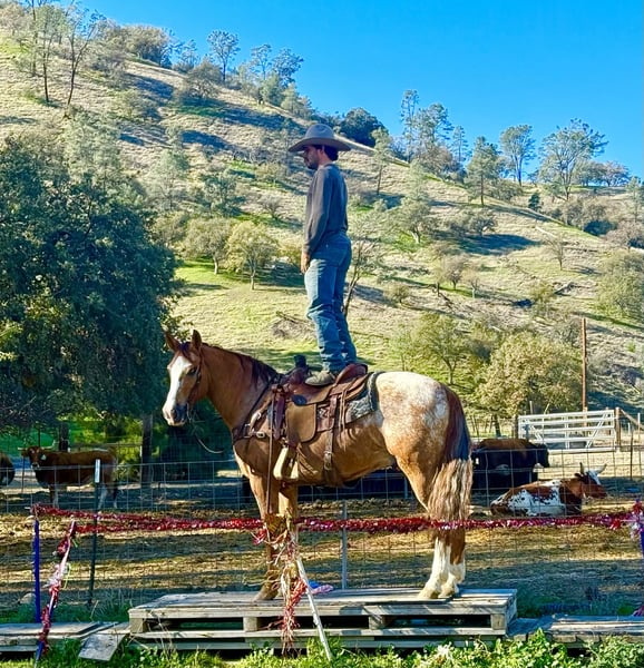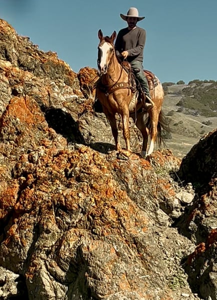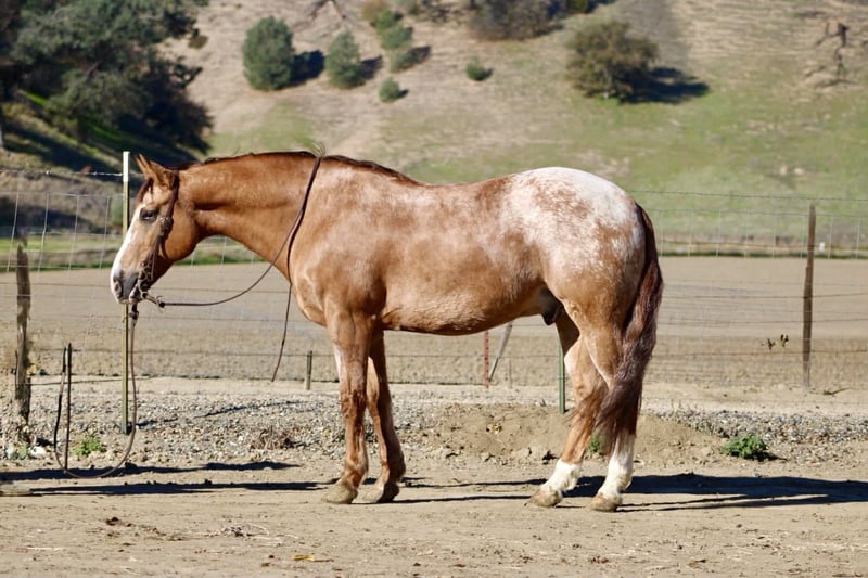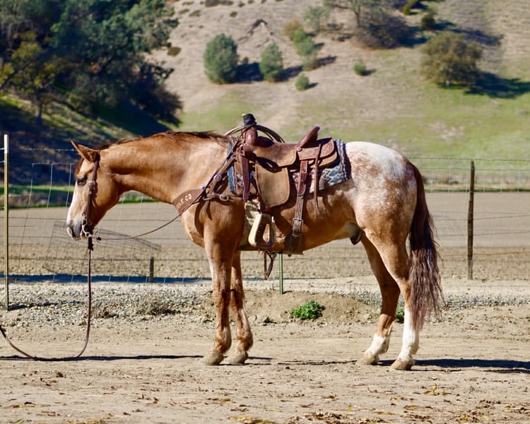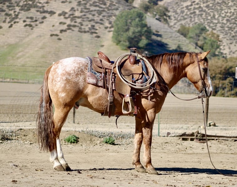 ONLINE AUCTION Place your bids at www.PlatinumEquineAuction.com Starting Bid $3500 Auction ends January 4th, 2025 Need a new saddle? Check out White Rock Saddles on our website or Facebook APPLEWOOD — Don’t scroll past this one. 9 Years Old • 14.3 Hands • Dun Blanket Appaloosa Gelding You could line up a hundred geldings and still spot this one first. Applewood is a standout — a striking dun blanket Appaloosa with tiger stripes on his legs and a look that flat gets attention. What really makes “Woody” special is how he feels under saddle. He’s consistent, pleasant, and makes every ride feel simple. Not hot, not heavy, and never complicated — just a steady, responsive gelding that’s easy to get along with from the first ride, and stays that way. He’s safe, dependable, and well-suited for riders of many levels. And he’s a cool ranch horse to the core. Woody has branded and worked cattle, and he loves it — the kind that stays handy, pays attention, and acts like he’s proud of his job. He’s been started on the heeling and enjoys cow work, with a willing attitude that makes him fun to ride and easy to keep improving. Woody has been hauled and exposed to just about everything: tarps, flags, obstacles, bridges, tires, water, brush, and traffic — and he takes it all in stride with a calm, steady mind. If you love to ride outside, Woody shines. He’s confident and sure-footed on the trail, navigating water crossings, wildlife, tight paths, logs, brush, and rocky ground with focus and care. He pays attention to where he puts his feet and stays composed when the terrain gets real — not just pretty. In the arena, Applewood is smooth and balanced with a comfortable way of going. He picks up both leads, moves out quietly, stays soft in the face and body, has a nice stop, backs willingly, and turns easily without getting stiff or overdone. Honest, uncomplicated, and enjoyable. On the ground, Woody is just as reliable. He hauls well, stands tied, bathes, clips, and is good for the farrier. Stalled or turned out, alone or in a group, he’s the same solid horse every time — no surprises. Applewood is one of a kind — uniquely marked, easy to ride, and the kind of horse you’ll be proud to own. Whether you’re building confidence or you’ve been doing this a long time, he’s the kind of partner you can feel secure on. Come meet him or call to learn more. Located in Paicines, CA (Longhorn Ranch) 📞 Dina: 831-537-1915 Nationwide shipping available.+ ONLINE AUCTION Place your bids at www.PlatinumEquineAuction.com Starting Bid $3500 Auction ends January 4th, 2025 Need a new saddle? Check out White Rock Saddles on our website or Facebook