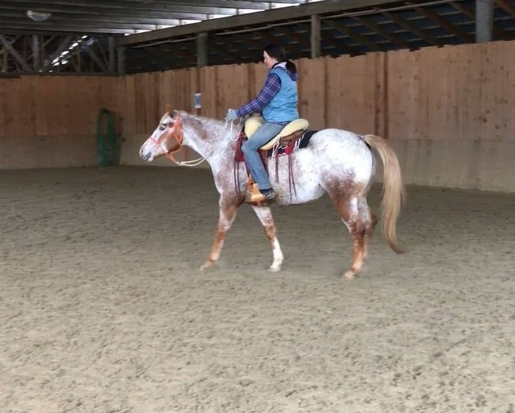 This sweet registered Appaloosa mare, born 2015, 5 panel N/N, red (roan/varnish, color genetics: ee/Aa , LP/lp, PATN1 n/n) has been a broodmare the last few years and gave me a several beautiful foals. She is great in groundwork, smart and easy to handling, people oriented and kids friendly. She has had a small amount of saddle training in the past, was backed, but not ridden, basic walk – trot, but still green under saddle and need lessons. She just needs more saddle time. It’s never too late for a new beginning! also Katy’s mother was at her first show at the age of eleven (the Appaloosa Show CR), and she won Grand Champion Mares and also the 1st place in Showmanship! She has correct conformation and beautiful head. She is 154cm tall, with strong body, suitable also for heavy riders. In her pedigree MA Thunderstorm, Doc O´Lena, High Sign, Bonanza Royal, Bright Eyes Brother, Mighty Bright, Joker B., Mansfields Comanche, etc. ask for more or check my homepage: appaloosa.sk You are welcome to visit us!