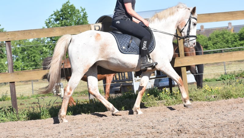Super geritten, einzigartig gefärbte Appaloosa-D/E Ponystute Lernen Sie Astana kennen, eine wunderschöne Stute von ca. 1,48 m. Typ Quarter Appaloosa. Sie wurde Mitte August 2007 geboren und verfügt über viel Erfahrung. Trotzdem würde man ihr ihr Alter auf keinen Fall anmerken! Sie ist in der Regel noch viele Jahre einsatzbereit. Mit ihrer besonderen Farbe und ihrem lieben, ansprechenden Kopf erobert sie sofort Ihr Herz! Astana hat die einzigartige Farbe: Varnish Roan Appaloosa. Astana ist hier äußerst brav und kooperativ. Sie ist für weniger erfahrene Reiter geeignet, bietet aber auch für den fortgeschrittenen Reiter genügend Herausforderung. Unter dem Sattel ist sie hier eine angenehme und vielseitige Pony, aber auch am Boden überzeugt sie auf ganzer Linie! Sie liebt Bodenarbeit und Freiheitsdressur und kann auf Kommando schon Schritt gehen und schaukeln. Sie läuft ordnungsgemäß eine Reitstunde im Reitstall mit, ist schön nachgiebig. Ein 7-jähriges Kind ritt sie schon alleine. Dank ihrer barocken Bauweise und ihres freundlichen Charakters ist sie auch ein ideales Familienpferd. Außerdem ist sie hier verkehrssicher und trailergeeignet. Inklusive sehr aktueller Körung mit Blutprobe. Bist du bereit, mit dieser besonderen Stute durchzustarten? Verpasse nicht diese Chance! Inklusive aktuellem Körungsgutachten mit Blutprobe, vollständig sporttauglich und ohne Beanstandungen. Preis: 3950 € inkl. Marken-Sattel und komplettem Reit- und Führstrickset
