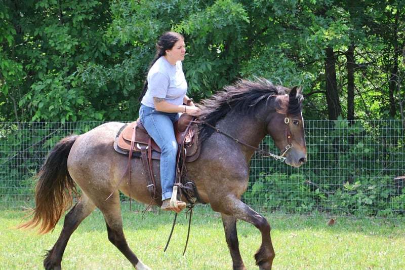 ONLINE AUCTION Place your bids at www.PlatinumEquineAuction.com Starting Bid $3500 Auction ends July 20th 2025 Need a new saddle? Check out White Rock Saddles on our website or Facebook Scarlett is hands down one of the most adorable gypsy vanner Appaloosa crosses you will meet. This little lady stands 14.1hh at 4 years old. She’s got beautiful and unique LP sliver/bay roan with white varnishing covering her. Light feathering covers her legs and she has a beautiful mane and tail. Her conformation is very classic and correct. Scarlett has a petite and pretty face with a kind and expressive eye. Scarlett is full of personality in a good way. She knows all the liberty work and will lay down and sit on command! She’s carried the flag, steeps over tarps, bridges and plays with the giant ball! She can say yes and no and side pass right over to the mounting block! This little lady is always happy to greet you and will stand for hours for grooming. She has had 60 days in harness and has driven across the countryside of Michigan. Under-saddle this girl is a blast!! She walk, trots, and canters with comfort and ease. She comes equipped with effortless transitions both upward and down. She stops on a dime and backs up like a pro. Scarlett moves very well off of seat and leg pressure as well. She has been working in the arena schooling 1st level dressage moves and works with ease and elegance. She’s a smart girl, once you teach her something she gets it’s and comes out the next day aiming to please. We have been having a blast teaching her to jump. Scarlett is jumping small courses in beautiful form and she’s not one to shy from flowers or fill. She holds a nice canter around a course and jumps in great form. She also has very easy flying lead changes. Scarlett has spent many hours out on the trails and she loves an adventure. She will ride out alone or in a group. She’s not phased by cracking brush, thick woods, dirt road traffic, wildlife, steep hills or water. With that being said we think she would be super fun to take out on a hunter pace, or even some lower level eventing. Scarlett is a very special girl. She’s got the movement, mind, and looks to go almost any direction you want to take her! Scarlett lives in Howell, MI. Please call or text Ellesse Schwartz 248-390-6831for more info. ONLINE AUCTION Place your bids at www.PlatinumEquineAuction.com Starting Bid $3500 Auction ends July 20th 2025 Need a new saddle? Check out White Rock Saddles on our website or Facebook