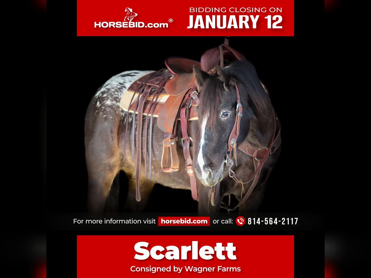 ♦️𝐍𝐄𝐖 𝐘𝐄𝐀𝐑'𝐒 𝑬𝒙𝒕𝒓𝒂𝒗𝒂𝒈𝒂𝒏𝒛𝒂♦️ Happening now thru MONDAY | JANUARY 12th - Available EXCLUSIVELY on HorseBid's website! For more details and to register visit: www.Horsebid.com CONSIGNOR CONTACT: Wagner Farms 814-564-2117 LOCATION: Clarion, PA BREED: Appaloosa / Gypsy Cross REGISTERED: No REGISTERED NAME: Scarlett COLOR: Black with White Blanket HEIGHT: 14.2 AGE: 5 GENDER: Mare Scarlett is a Unique Appaloosa Gypsy Cross Mare. She is very good looking with her black color and white blanket across her but. She stands 14.2 hands tall making her easy to get on and get off but also stocky enough to carry any size rider. You will love how quiet and gentle Scarlett is . She has a great mind and a great disposition. She is super friendly and easy to catch. She is very lovable. She is started very nicely in the arena and has a nice walk, trot and canter and head set. I have carried the American Flag on her and the teddy bear nothing bothers her or phases her. She is very laid back and easy with everything. Scarlett is a great trail horse. She will go any where you ask her to on the trail. Thru the water, mud and over the logs with ease. If i could describe Scarlett with one work it would be easy! She is traffic safe and good around four wheelers, bikes and farm equipment . She may only be 5 but she is seasoned beyond her years. Scarlett just had a health exam but veterinarian and she passed everything 100 percent. The health exam was on 12-29-25 . Scarlett is selling with no reserve to the highest bidder. Whoever wins her will absolutely love her. We can help arrange shipping anywhere in the United States. Call or Text Glory at 814-564-2117