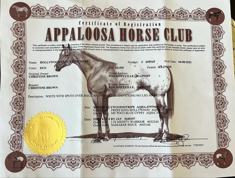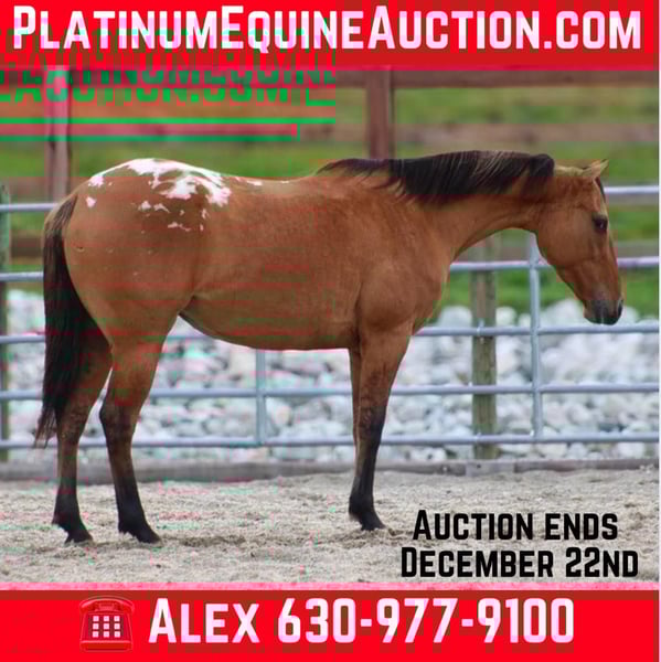 ONLINE AUCTION Place your bids at www.PlatinumEquineAuction.com Starting Bid $3500 Auction ends December 22nd, 2024 Need a new saddle? Check out White Rock Saddles on our website or Facebook! Hollywood Fancy Freckles, ‘Reece’ is a 2021 model registered Appaloosa mare standing 14.3h. Reece is super fancy mare that would make anyone a great trail partner, future contesting horse, or ranch rider. She moves off your seat and leg very well and has a nice little neck rein. We have introduced her to basic lateral work as well. She has a good amount of get up and go when asked but has a great woah and is very responsive. She has easy transitions with a nice rhythmic canter. Reece is a super confident horse who does not spook easily. She’s great being hauled to new places, will go out trail riding alone, and is confident crossing all obstacles. Reece is a super intelligent and hardworking mare. She has so much try in her, she aims to please and gets better with every ride. She loves attention and tends to get attached to one person. Reece is not mareish and currently turns out during the day in a mixed herd very well. She is easy to catch and has no stall vices. Great barn manners, ties/crossties well, and loads and hauls with no issue. Zero health or soundness issues. Located in Hardinsburg IN. Text/call Alex with A&A Horses 630-977-9100 for more information. ONLINE AUCTION Place your bids at www.PlatinumEquineAuction.com Starting Bid $3500 Auction ends December 22nd, 2024 Need a new saddle? Check out White Rock Saddles on our website or Facebook!