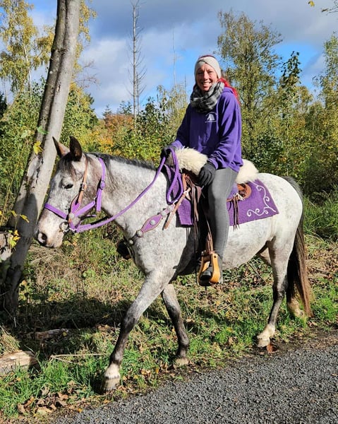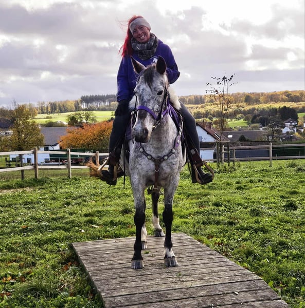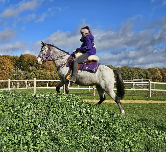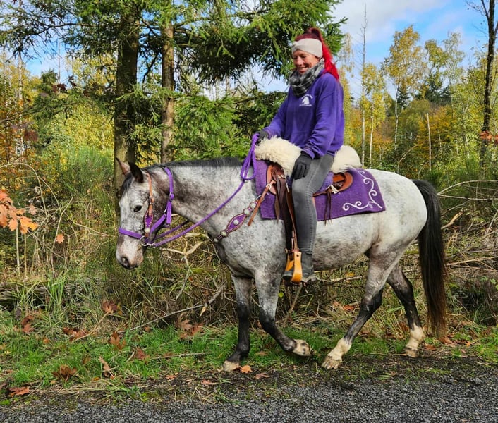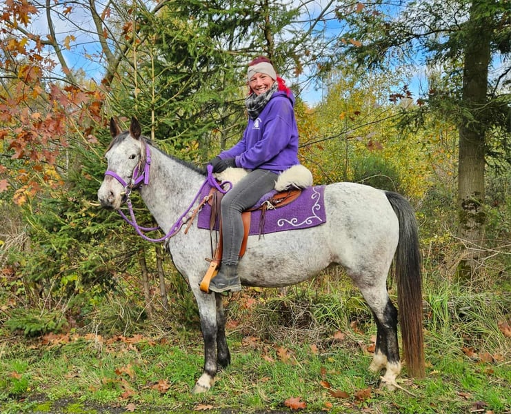 Freizeitpartner-Wanderreiten -Schul oder Familienpferd CARY Alter: 6 Jahre Stockmaß: ca. 1,45 stm Preis: 4900 AKU: vorhanden E-Paß u. Microchip ✨ Über die Stute: Diese nette Appi-Mix - Stute hat ein freundliches Wesen. Sie ist brav im Umgang,unter dem Sattel brav und zeigt sich stets menschenbezogen und lernwillig. Mit ihrer charmanten Art ist sie eine tolle Freizeitpartnerin . Ihr Westernsattel und Zubehör kann für 1500,- mit ins neue Heim gebracht werden . Perfekt für: Pintostute die sowohl im Gelände als auch in der Freizeit überzeugt Kennt Herdenhaltung im Offenstall sowie auch Boxenhaltung . Unsere Pferde: – regelmäßig entwurmt – vom Schmied & Osteopathen betreut Hofladen: Westernsättel, Trensen, Zubehör ihr Westernzubehör kann gerne übernommen werden ca. 1500,. incl Markenwesternsattel . Transport & Zubehör auf Wunsch günstig organisiert Unser Service: ✅ 3 Monate Umtauschrecht ✅ Proberitt: 35 €, jedes weitere Pferd 25 € (beim Kauf am selben Tag angerechnet) ✅ 100 € Sofort-Rabatt bei Abholung/Transport am selben Tag ✅ Persönliche & ehrliche Beratung Anfragen bitte nur telefonisch: 0171 – 4001968 Täglich erreichbar von 8–20 Uhr ⚠️ Keine E-Mail oder WhatsApp ⚠️ Alle Angaben ohne Gewähr