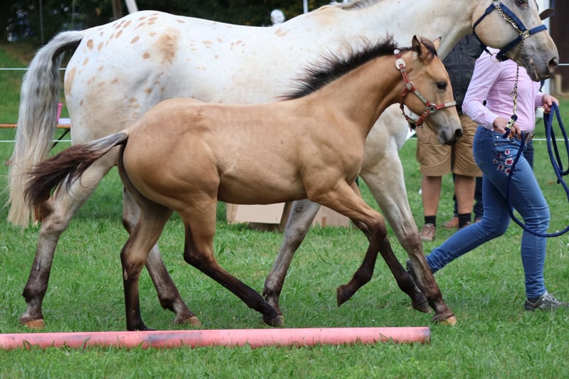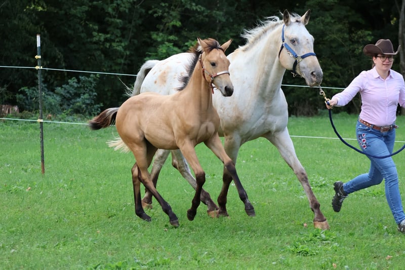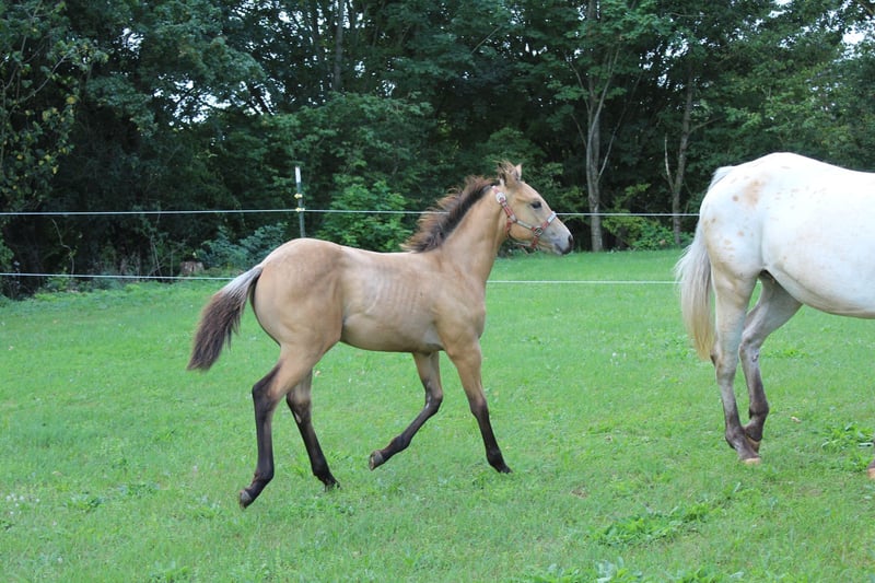 **Verkaufsanzeige: Appaloosa Stute** Zum Verkauf steht eine wunderschöne Appaloosa Stuten, geboren im Jahr 2025. Mit einem Stockmaß von 156cm ca. ist sie die ideale Partnerin für Western-Reiter, die auf der Suche nach einem vielseitigen und charakterstarken Pferd sind. Diese Stute zeichnet sich durch ihr freundliches Wesen und ihre Lernbereitschaft aus. Sie ist gut erzogen und möchte immer gefallen . Ihre auffällige Fellzeichnung macht sie zu einem echten Blickfang. Sie eignet sich sowohl für den Freizeitbereich als auch für den Turniersport ist natürlich auch sehr interessant für die Zucht . Bei Interesse oder für weitere Informationen stehe ich gerne zur Verfügung. Peppys Golden Belle ( LG 2 prämiert ) Ca 158cm Sire: Cowboys Spoted San DAM: Sheza Mithy Nikita Farbe Buckskin Fohlen sind 5 Panel doppelt NEGATIV über die Elterntiere Schreiben Sie mir einfach eine Nachricht!