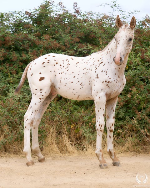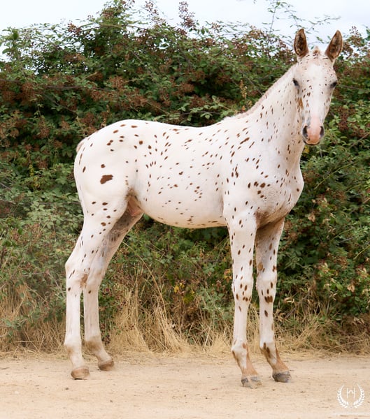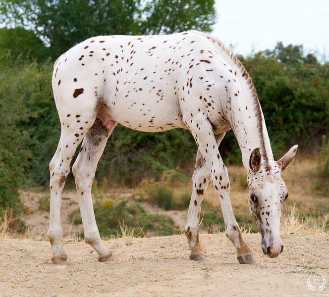 🐴 Cherokee is an impressive CDE colt with an Appaloosa leopard coat on a chestnut base. He carries the LP (Appaloosa) and PATN1 genes, is white on both hind legs and has a beautiful blaze. The standout colt of the 2025 crop, born on 28 May. Big and very harmonious, with a powerful physique for sport and riding, and a sweet, affectionate temperament. ♀️ Dam: Nana Monte Alegre Appaloosa mare with spotted blanket pattern on a palomino base, registered as a breeding mare with ANCADES. ♂️ Sire: Bucanero Homozygous CDE stallion on a chestnut base, from the Dhym Diamond sport line. 🔬🧬 Genetics and coat: Chestnut Appaloosa – Leopard European Spot (( ee -- LPlp PATN1patn1 )) 📄 Sold with official ANCADES certificate / Main CDE Studbook. 📲 Contact: 🟢 WhatsApp: +34 639 522 420 🔴 Instagram: @yeguadamontealegre 📸 Photography: @almarevisual