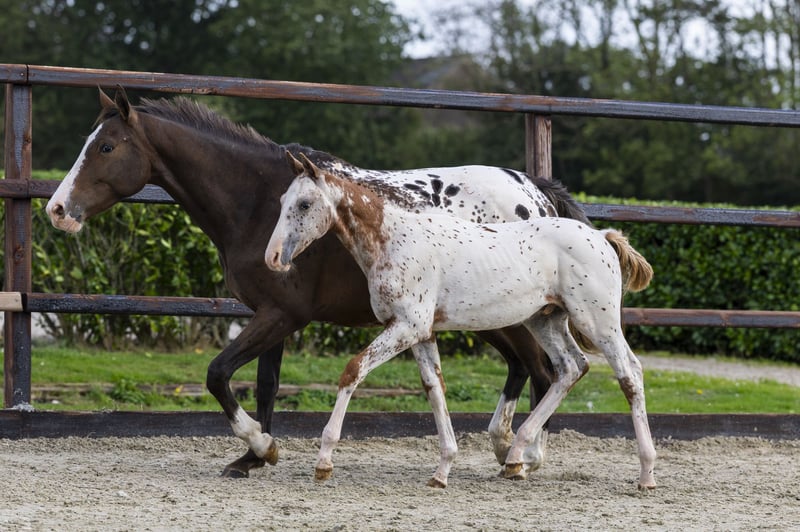 Wie auffällig möchten Sie ihn haben? Weiß mit braunen Flecken und sein Hals ist braun gescheckt. Special Effects macht seinem Namen alle Ehre. Es ist ein hochbeiniges, leichtfüßiges Fohlen mit einem kraftvollen Galopp. Vater ist der sechsjährige, bunte Hengst Ohio de Peru (1,20 m Springen), Sohn des 1,60 m Grand Prix-Hengstes Con-Cor. Die Mutter Touch of Magic stammt von dem Appaloosa-Hengst Joly Spot K Z (1,20 m Springen). Die Großmutter Una d’Or T (Nimmerdor x Renville) ist eine Halbschwester des 1,60 m Grand Prix-Pferdes Jan Aart T und zweier Pferde auf 1,40 m Niveau und ist die Tante von Courage T Z (1,60 m GP) sowie den 1,55 m GP-Pferden Zalerno und Miss Willow T. Una d’Or T brachte selbst die Springpferde Blue Boy T (1,40 m Springen) und Gys van Avantos Weering (1,30 m) sowie ein Pferd auf 1,20 m Niveau zur Welt.