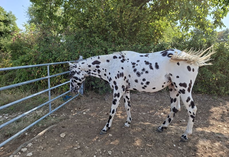 Dsr Bluhawks Rocky, ein kleiner Appaloosa-Fohlenhengst PP, wird Ihnen im Haras de Blignys in CERSOT (71) zur Handberitt angeboten. Er wird ab April 2026 auch in IAC in ganz Frankreich und der EU angeboten. Rocky hat derzeit eine Stockmaß von 1,47 cm. Er ist homozygot für Schwarz und PATN1 und besitzt ein Cremogen. Seit seiner frühen Kindheit lebt er in einer Herde mit Artgenossen gleichen Geschlechts. Im Alltag ist er ein ruhiges, aber reaktionsschnelles Pferd, das menschenbezogen, gesellig, verspielt, pflegeleicht, großzügig und willig ist. Er ist noch nicht angeritten, wird aber im Freien oder in der Reithalle geführt. In Freiheit zeigt er einen schönen Sprung über die Stangen. Er hat auch eine sehr gute Genetik (Linien Tobys, Pratt und Ulrich), die er von seinen Eltern geerbt hat. Sein Anreiten ist für den Herbst 2026 geplant. Er sollte auch an einigen Wettbewerben teilnehmen (in Diskussion). Da er noch jung ist, war 2025 sein erstes Jahr der Deckung, und wir erwarten sein erstes Fohlen im Juli 2026. Wenn Sie ein kleines Pferd für Freizeit oder Wettkampf oder einfach nur für die Zucht suchen, ist Rocky genau das Richtige für Sie. Der Hengst ist auf dem neuesten Stand der Gesundheits- und Impfungen (Grippe - Rhino) vor Beginn der Saison. Ruhige und gut erzogene Stuten, die hinten beschlagen sind, sind gesundheitlich auf dem neuesten Stand, mit negativen Tests auf Metritis, Arteriitis und Anämie. Deckungen im Handbetrieb: APHC, QH: 500 Euro OC: 400 Euro Deckungen in IAC: APHC oder QH: 650 Euro Ein Deckungsvertrag und eine Pension sind obligatorisch. Es besteht die Möglichkeit, die Stute vor Ort in der Zuchtpension zu lassen. Für weitere Informationen können Sie mich kontaktieren. Meine Webseite: https://mldemar36.wixsite.com/appaloosa-fondatio-1