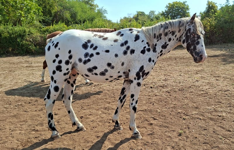Dsr Bluhawks Rocky, petit cheval de race appaloosa fondation PP vous est proposé au Haras de Blignys à CERSOT (71) en monte en main. Il sera également proposé à compter d'avril 2026 en IAC dans toute la France et UE. Rocky toise actuellement 1,47 cm. Il est également homozygote sur le black et le PATN1 et possède un gène crème. Il vit depuis son tout jeune âge en troupeau avec des congénères du même sexe. Au quotidien, c'est un cheval calme mais réactif, proche de l'homme, sociable, joueur, facile aux soins, généreux et volontaire. Pas encore débourré, il sort en main en extérieur ou en carrière. En liberté, il présente un joli coup de saut sur les barres. Il possède également un très bonne génétique (lignées Tobys, Pratt et Ulrich)héritées des ses parents. Son débourrage est prévu pour l'automne 2026. Il devrait également sortir sur quelques compétions (en discussion). Encore jeune, 2025 a été sa première année de saillie et attendons son premier poulain courant juillet 2026. Vous rechercher un cheval de petite taille, pour le loisir ou la compétition ou tout simplement pour de l'élevage, Rocky est fait pour vous. Etalon à jour des tests sanitaires et vaccins (grippe - rhino) avant le début de la saison. Juments calmes et éduquées, déferrées des postérieurs, à jours sanitairement, test négatifs métrite, artérite et anémie. Saillies en main : APHC, QH : 500 euros OC : 400 euros Saillies en IAC : APHC ou QH : 650 euros Contrat de saillie et pension obligatoire. Possibilité de laisser la jument en pension élevage sur place. Pour tout renseignement, vous pouvez me contacter. Mon site internet : https://mldemar36.wixsite.com/appaloosa-fondatio-1