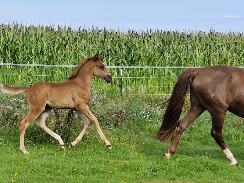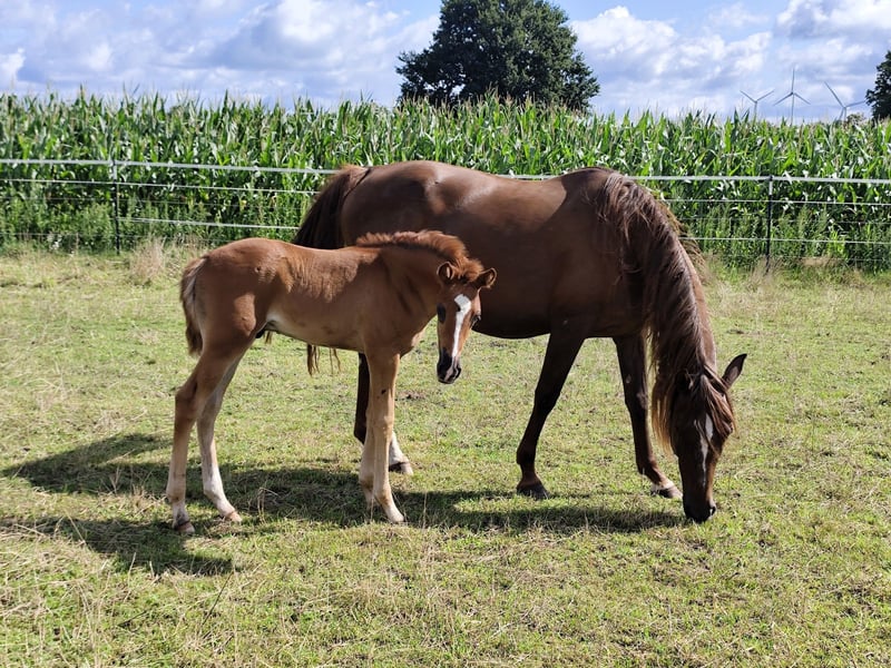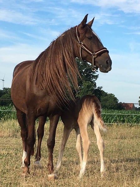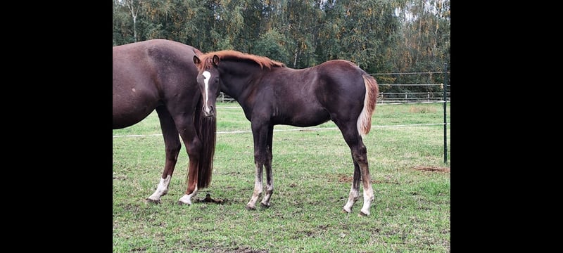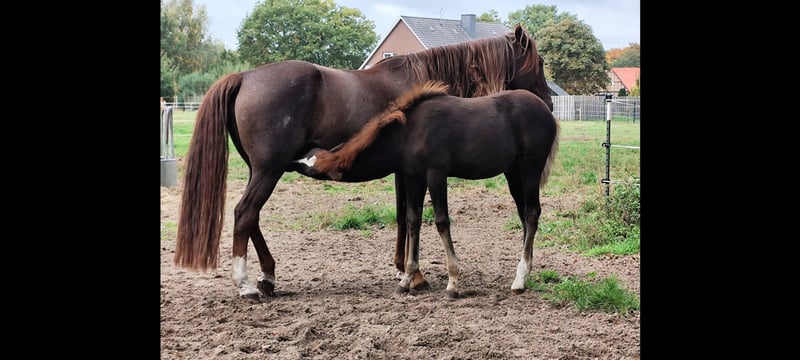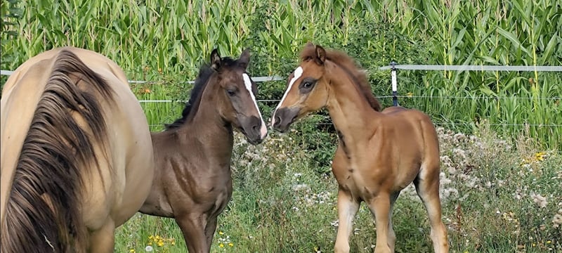 "Janeez ait Guerrouane" - impressive foal with first-class, pure Moroccan lineage and a dream color of dark bay. Janeez will receive papers from the VFZB. His father "Nourasse ait Guerrouane" is approved as a premium stallion by the VFZB and is a son of the exceptional stallion "Guerrouane ait Azzayani" (VFZB Elite Stallion/OMCB World Champion). The mother "Chichaoua des Aures" was born in France and imported by me at the age of 2. She is registered in the Stud Book 1 of the VFZB. The grandparents on both sides are original imports from Morocco. Janeez himself is an extraordinary foal, raised in a species-appropriate manner, and will reach a final height of at least 155 cm. The last 4 photos show the parents.
