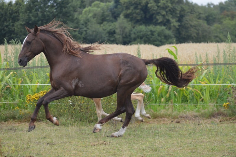 "Janeez ait Guerrouane" - beeindruckendes Fohlen mit erstklassiger, rein marokkanischer Abstammung und Traumfarbe Dunkelfuchs. Janeez bekommt Papiere vom VFZB. Sein Vater "Nourasse ait Guerrouane" ist beim VFZB als Prämienhengst gekört und ein Sohn des Ausnahmehengstes "Guerrouane ait Azzayani" (VFZB Elitehengst/ OMCB Worldchampion). Die Mutter "Chichaoua des Aures" wurde in Frankreich geboren und 2jährig von mir importiert. Sie ist ins Stutbuch 1 des VFZB eingetragen. Die Großeltern auf beiden Seiten sind Original Importe aus Marokko. Janeez selbst ist ein außergewöhnliches Fohlen, wächst artgerecht auf und wird ein Endmaß von mndest. 155cm erreichen. Die 4 letzten Fotos zeigen die Eltern.