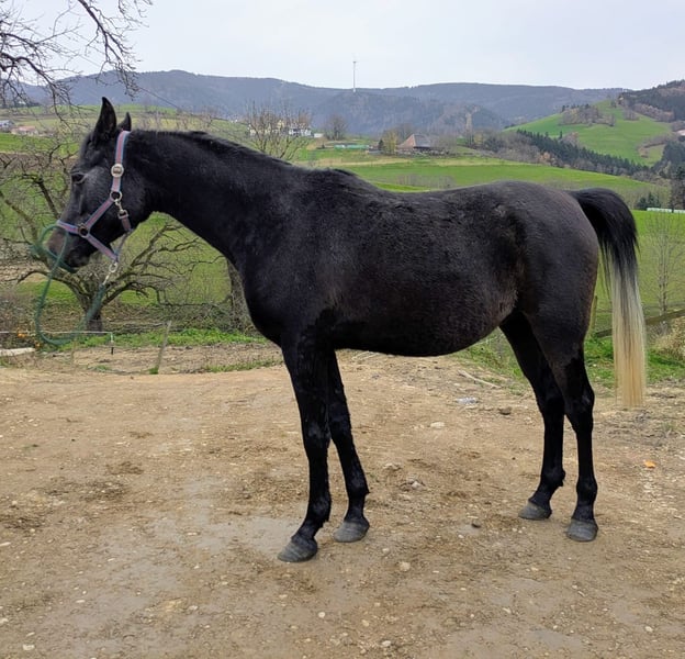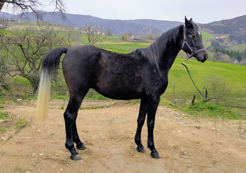 Unsere Wallach steht am Anfang der Ausbildung.Er ist brav im Umgang und ist immer interessiert neue Dinge zu lernen. Momentan wird er an der Longe vorbereitet für den nächsten Schritt als Reitpferd