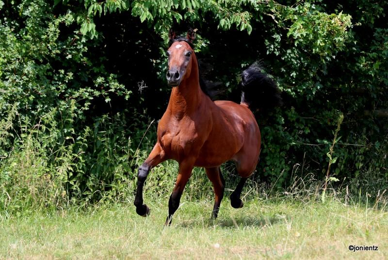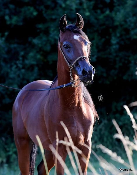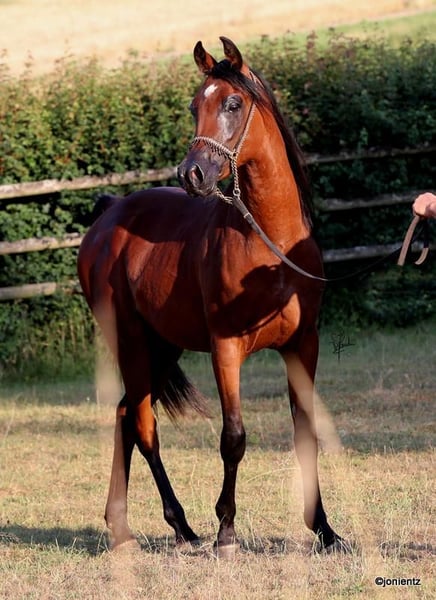 Talal El Mujid est un magnifique jeune étalon égyptien brun issu d'un élevage de premier choix avec des lignées très intéressantes. Il réunit les caractéristiques typiques de cette noble race : intelligence, grâce et un tempérament doux. Il possède une excellente conformation et un bon équilibre, ainsi que des mouvements exceptionnels, ce qui le rend adapté à la fois pour la reproduction et pour les loisirs. Talal est très charmant, bien socialisé, vit en grande troupeau et se montre calme et amical dans ses interactions. Il est déjà habitué au licol et à l'entraînement à la conduite, et montre un grand potentiel pour une formation ultérieure. Si vous êtes intéressé, nous serions ravis de vous contacter pour partager plus d'informations et convenir d'un rendez-vous pour une visite. www.goschenhof-arabians.de
