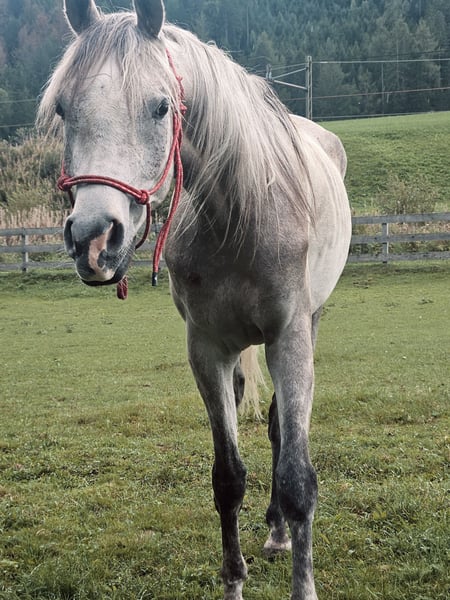 Per il mio stallone arabo cerco una sistemazione adatta. Roy è nato nella nostra scuderia, è rimasto con sua madre fino a 5 mesi e poi è cresciuto in un piccolo branco. Ho fatto molto lavoro a terra con lui, sa fare molti trucchi come sdraiarsi e molto altro. È stato leggermente montato; sa camminare, trottare, galoppare, spostarsi con le gambe, fermarsi molto bene e tornare indietro. Desidero per lui una persona che abbia molto tempo per molte avventure insieme. Preferibilmente in un gruppo con altri cavalli arabi.
