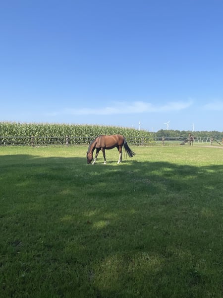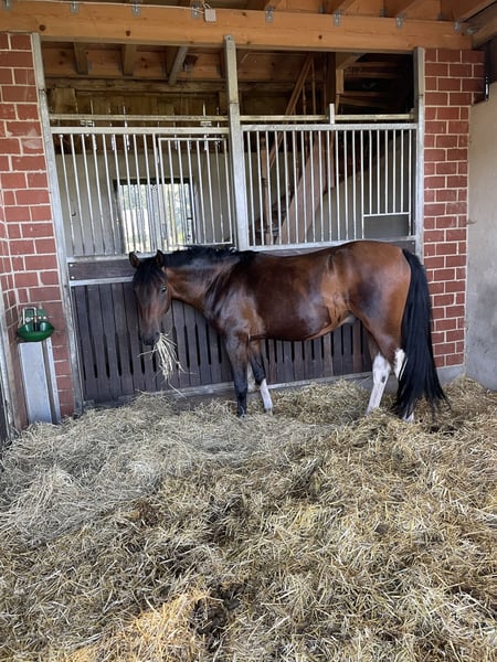 Kein Notverkauf , nur wenn alles zu 100% passt. Ich biete hier meinen bald 5 jährigen Paint x Araber Wallach zum Verkauf an. Da er in fördernde Hände kommen soll. Er ist angeritten und läuft brav in allen Gangarten unterm Sattel. Er tut sich aber schwer damit den Reiter auszubalancieren, da er noch viel mit sich selbst beschäftigt ist. Deshalb sollte man schon einige reiterliche Erfahrung mitbringen, auch um ihn weiter ausbilden zu können. Im Gelände ist er schon recht guckig aber nicht kopflos und es macht ihm deutlich mehr Spaß als in der Halle. In der Herde ist er eher rangniedrig aber versucht jeden zum Spielen zu animieren. In einer zu großen Offenstallherde findet er nachts leider keine Ruhe. Im Sommer stellt er sich gerne selber rein, da er die ganzen Fliegen und Bremsen schrecklich findet…leider leichter sommerekzemer.. Ansonsten ein sehr lieber Kerl im Umgang. Er ist ein absolutes Ein- Personen - Pferd.