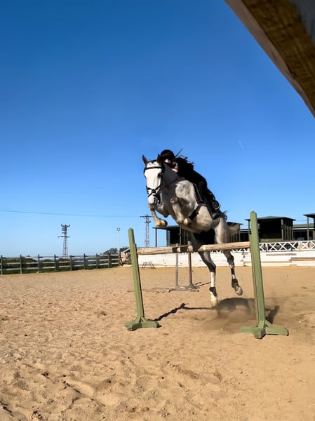 For riders seeking a talented yet versatile partner, Hector offers the best of both worlds. This 6-year-old grey Arabian gelding (16.1 hh) is a promising show jumper currently at 1.20 m, with scope to go much higher. He has effortlessly cleared single fences of 1.50–1.60 m and, with training, could reach competitive levels. Hector also brings experience outside the arena. Formerly used for safaris, he is trustworthy in all terrains, including water and even the sea. Trail riding, flatwork, or jumping—Hector approaches it all with willingness and enthusiasm. As a gelding, his temperament is a true asset: affectionate, people-oriented, and steady. He has never raced, making him a fresh candidate for both sport and leisure disciplines. Sound, healthy, and ready to excel—Hector is a rare opportunity for riders who want both talent and companionship in one horse. Viewings and trials are welcome at any time for serious buyers.