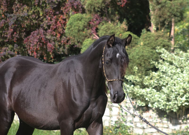 Beautiful 1.5-year-old filly, black homozygous by parentage looking for a new home. Will be tall, final estimated height approx. 156/7 + cm. Correct solid body, super movements, nice head. Very interesting pedigree with champions such as Simeon Sadik, Dubai Pasha, Thee Deesperado, The Minstril, Wagram, Probat, etc. Prospect for breeding/show or riding/endurance (top endurance pedigree). Registered in Polish Arabian Stud Book, microchipped, DNA tested. Price +8% VAT WhatsApp +48 513 179 245 https://www.black-arabians.com/