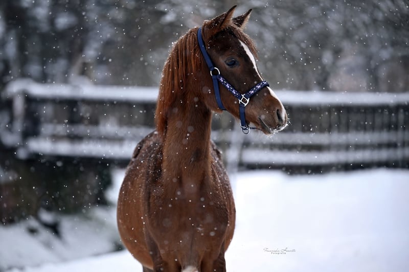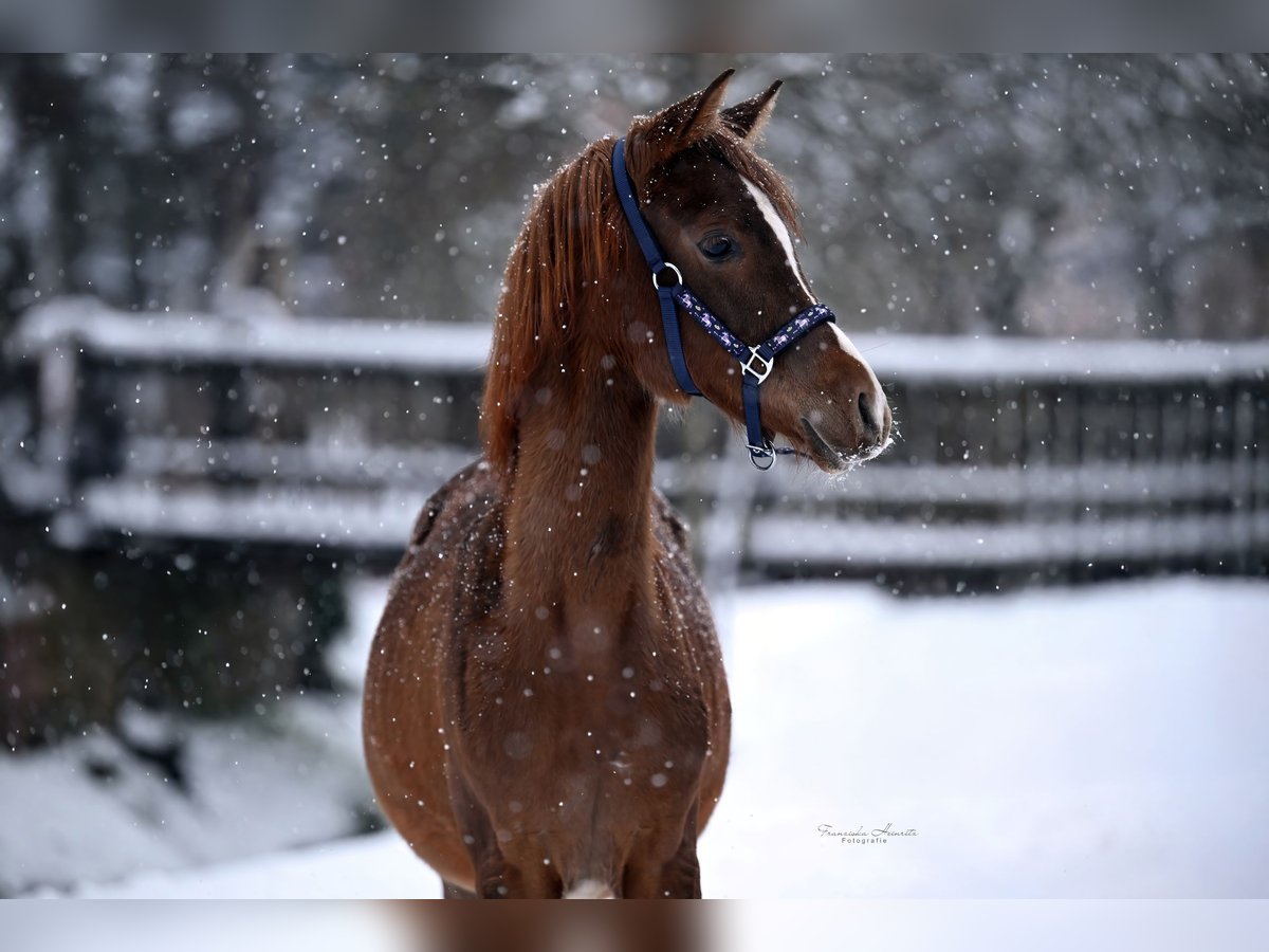 For sale is our adorable purebred Arabian mare, Rosa el Portofino. Born: February 18, 2025 Color: Chestnut Estimated final height: approximately 15.5 hh CA free Rosa is microchipped and has a passport. She is familiar with basic foal handling and is also calmly led by our daughter. She is regularly dewormed and introduced to the farrier. Currently, she spends nights in a box and during the day in a herd in an open stable. We do not send videos; a personal meeting is highly encouraged. We look forward to friendly inquiries, please contact us by phone only at 0170/2066751.