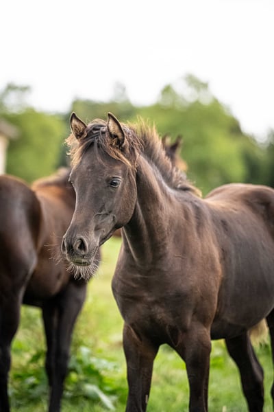 Superbe pouliche noire, robuste et bien construite. Aisa ne laisse guère à désirer, que ce soit pour les éleveurs ou les cavaliers. Avec son caractère ouvert et intrépide, elle s'immisce immédiatement dans le cœur. Aisa grandit dans notre troupeau de juments/poulains et est parfaitement sociabilisée. Bien entendu, nos animaux sont régulièrement vermifugés et vaccinés après le sevrage. Un certificat de filiation et un passeport équin sont déjà disponibles. Un élevage supplémentaire jusqu'à l'âge de 1,5 ans est possible. Aisa se réjouit de votre visite.