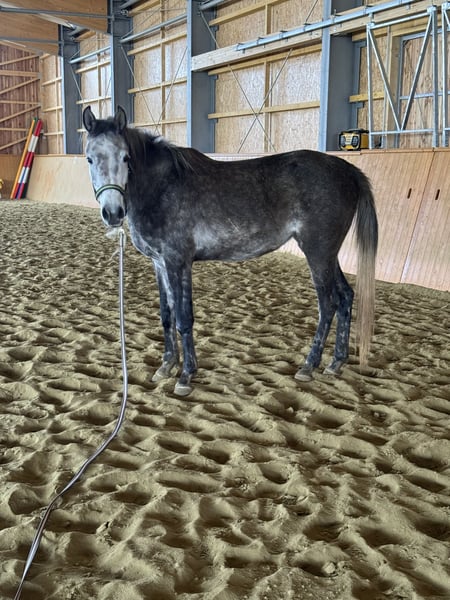For sale is this 2023-born purebred Arabian mare, "Natali." She comes from a poor background, and I am only her temporary caretaker. She needs a loving owner who can provide her with patience and a calm environment. She learns quickly, is low in the herd hierarchy, and would likely feel most comfortable in a small group of horses. If you're interested, please feel free to contact me.