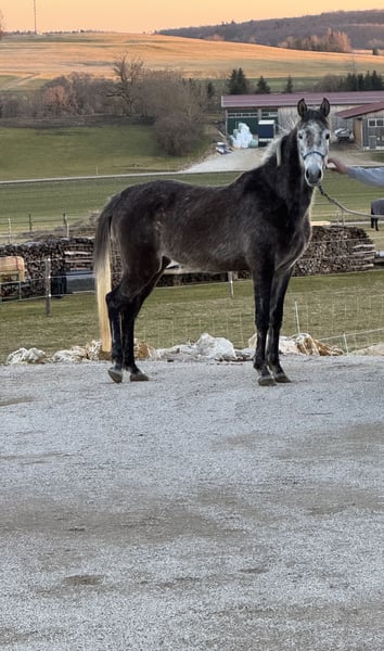 Natali is still at the beginning of her training. She impresses with her sensitive, curious, and eager-to-learn personality. She is halter-led, familiar with the farrier, and has already gained some experience during walks. Her delicate nature makes her particularly suitable for experienced and empathetic horse owners who enjoy furthering the training of a young horse and building a trusting partnership. With continued, age-appropriate training, she will surely become a wonderful leisure or sport horse. If interested, we look forward to hearing from you and are happy to provide further information.