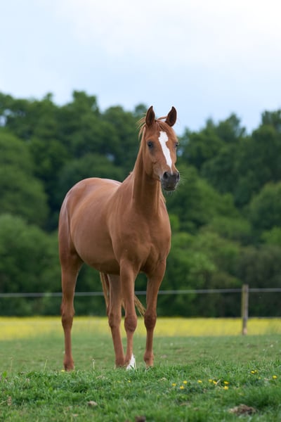 Traditionally, the Arabian horse was raised by Bedouin tribes who moved their animals from place to place in search of pasture. The constant need to seek out fresh grazing and water meant that these nomadic people raised tough and intelligent horses that could survive in harsh conditions. These were the fundamental characteristics of the original Arabian horse - hardiness, intelligence and willingness to share the lives of the nomads. The modern Arabian horse, although it has changed a great deal over the centuries, still exhibits these important qualities, which are prized and promoted by all those who sell an Arabian. These are just a few of the properties that attract people to buy an Arabian too, along with their compact conformation, excellent feet and great powers of endurance. While the original horses of the Bedouin were often smaller, modern Arabians average 14.1 to 15.1 hands in height (57 inches/145cm to 61 inches/155cm) and weigh approximately 800lb/360kg to 1,000 lb/450kg. The distinctive dish-shaped face of the Arabian horse is frequently described as being finely chiselled. Their eyes are large and luminous, their necks arched, and tails carried high and proudly. The most popular coat colours are bay, grey and chestnut. These superb riding horses excel at endurance.