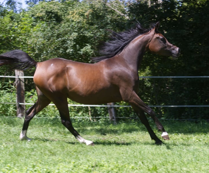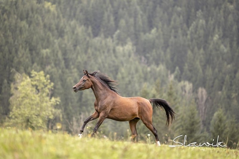 **Sale ad: Purebred Arabian mare** For sale is a beautiful purebred Arabian mare born Feb. 2022. This young lady impresses with her elegant appearance and excellent breeding quality. She is for sale as we are downsizing and returning to our roots... black breeding. **Characteristics:** - Breed:** Thoroughbred Arabian - Sex:** Mare - **Year of birth:** 2022 - **Color:** bay - Height:** 150 cm - **Application:** Breeding but also conceivable for leisure sport. This mare is ideal for breeders and leisure riders who value noble bloodlines and excellent conformation. She has a friendly nature and shows great potential for future breeding projects. If you are interested or for further information, please contact us.