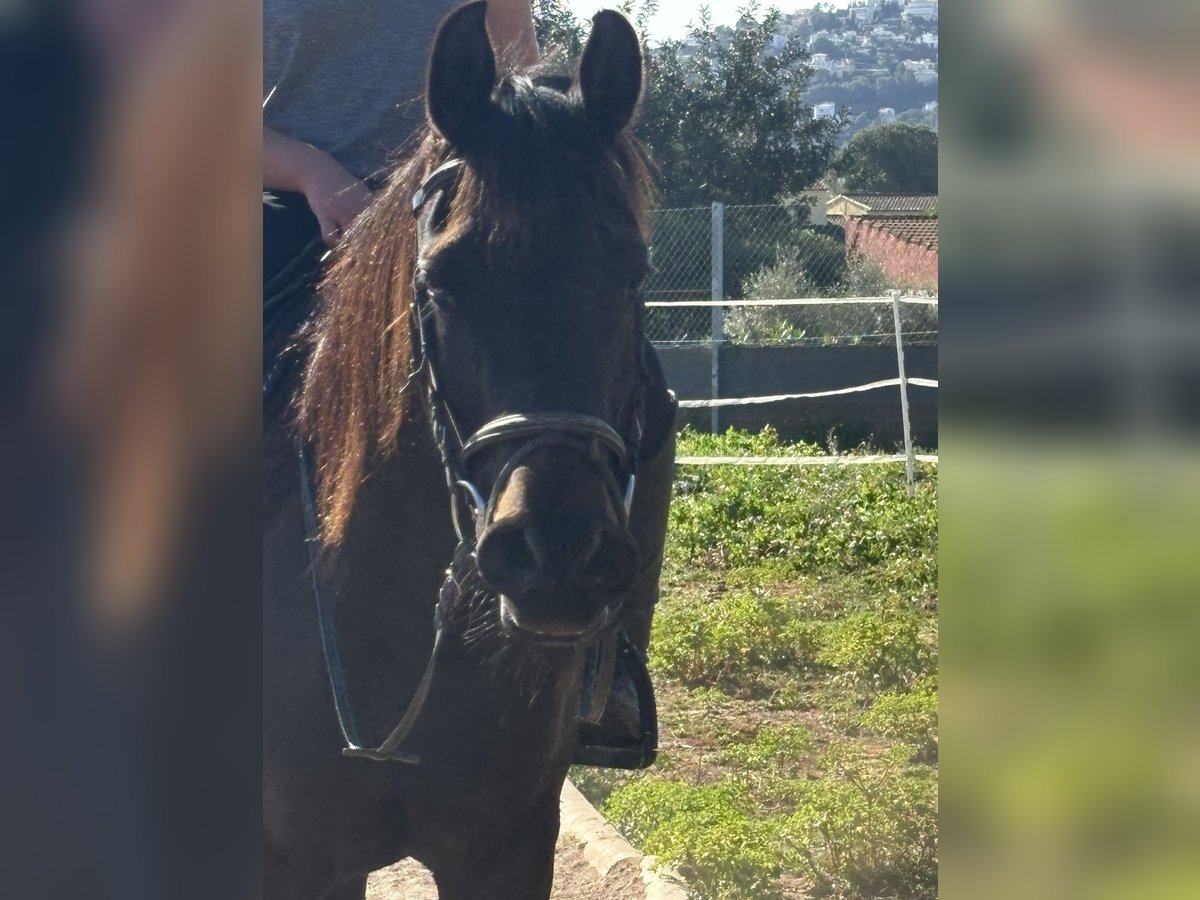 Pepsi, es una yegua árabe negra, es muy tranquila por una árabe, pero también a veces puede ser emotiva así que vale por persona que tiene algo de experiencia será ideal por RAID o paseos largos , que es una yegua sana , no se cansa es muy resistante con la color. La he comprado por mi hija hace más de 2 años ( la niña tenía 10 años) siempre se ha portado bien y salta con ella recogidos de 80 cm sin problema Le yegua es muy respetuosa 9 años 1m55 Pies descalza Polivalente Estabulación libre