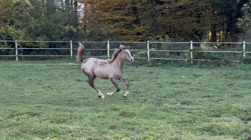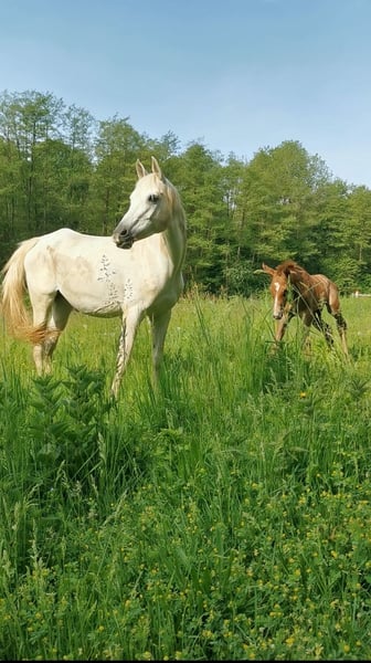 Vollblutaraber-Stutfohlen mit erstklassiger Distanz-Abstammung Unser zauberhaftes arabisches Vollblutfohlen Nayeli sucht ein förderndes, kompetentes Zuhause. Sie vereint in ihrem Pedigree einige der erfolgreichsten und verlässlichsten Distanzlinien Europas – ein hervorragendes Fundament für Sport und Zucht. Vater: Djevar des Graves Ein Name, der im Distanzsport für absolute Leistungsbereitschaft, Härte und Herz steht. Djevar-Nachkommen dominieren seit Jahren internationale Ritte über 120 km und 160 km und platzieren sich regelmäßig bei Europa- und Weltmeisterschaften unter den Top Ten. Herausragendes Beispiel: Yalla de Jalima – 3. Platz bei der WM 2024. Mit Nayeli trägt auch dieses junge Stutfohlen das Potenzial in sich, in Zukunft im hochklassigen Distanzsport zu glänzen. Mutter: Asmara Bint Quickly Asmara selbst konnte verletzungsbedingt nie im Sport antreten, überzeugt jedoch durch einen außergewöhnlich menschenbezogenen, klaren und aufmerksamen Charakter – Qualitäten, die sie unübersehbar an Nayeli weitergegeben hat. Ihr Vater, Quickly du Sauveterre, erfolgreich bis 160 km, führt wertvolles Persik-Blut und vererbt Leistungsstärke, Ausdauer und einen unkomplizierten, kooperativen Charakter. Seine Nachkommen laufen international erfolgreich bis 160km. Die Mutterlinie wird abgerundet durch Massafa Bint Rubina, siegreich auf der Rennbahn und Mutter mehrerer erfolgreicher Renn- und Distanzpferde, darunter der bekannte Dschihad Ibn Massafa (WAHO-Trophy Sieger 2013). Nayeli zeigt bereits jetzt: • ein korrektes Fundament und gute Aufrichtung • wache, intelligente Ausstrahlung • viel Menschenbezogenheit, Mut und Lernfreude • ein elegantes, leichtfüßiges Bewegungsbild • einen Charakter, der typisch für diese leistungsstarke Linie steht: aufmerksam, freundlich, kooperativ Dieses Stutfohlen bietet eine seltene Kombination aus international bewährter Leistungsabstammung, hervorragendem Interieur und dem gewissen arabischen Charme – ideal für ambitionierte Distanzreiter, Züchter oder Sportreiter, die ein Nachwuchspferd mit Perspektive suchen.